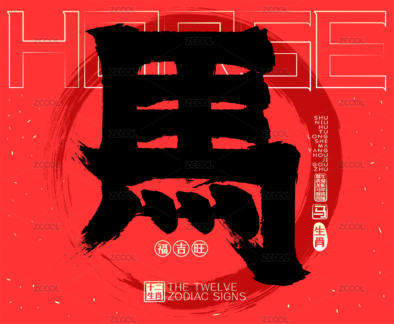 丑牛十二生肖喜庆水墨中国风矢量书法字