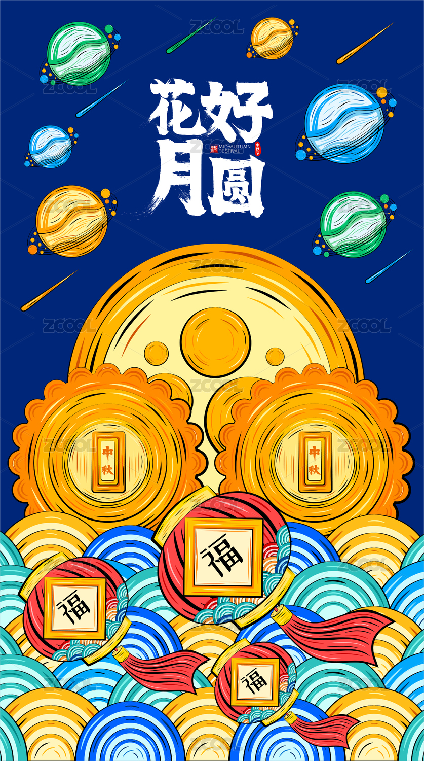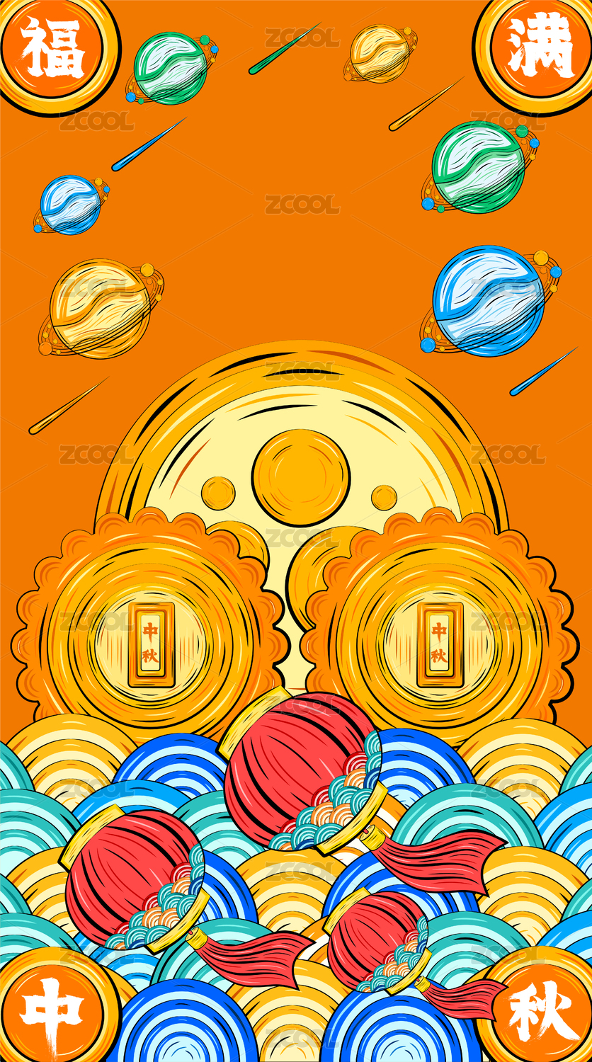 HEMAF2022,中秋,中秋节,国潮,月饼,灯笼,福字,对联,潮流,手绘