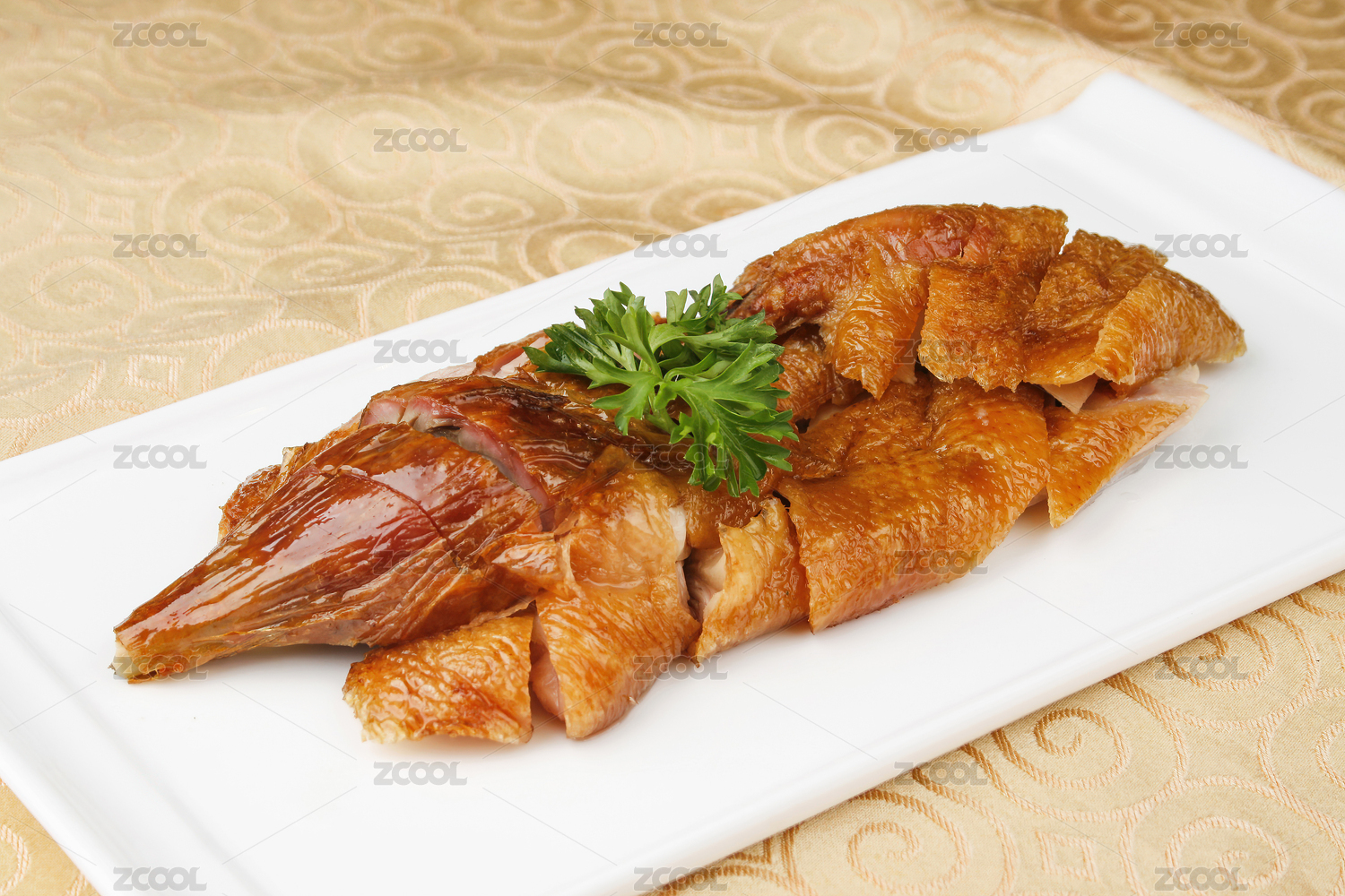 白色盘子里的烤鸭烤鸡烤鹅烧鹅