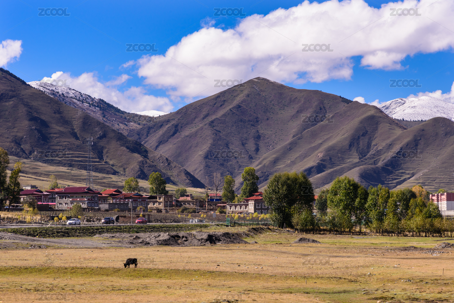 四川甘孜州折多山下新都桥的藏族乡村风光