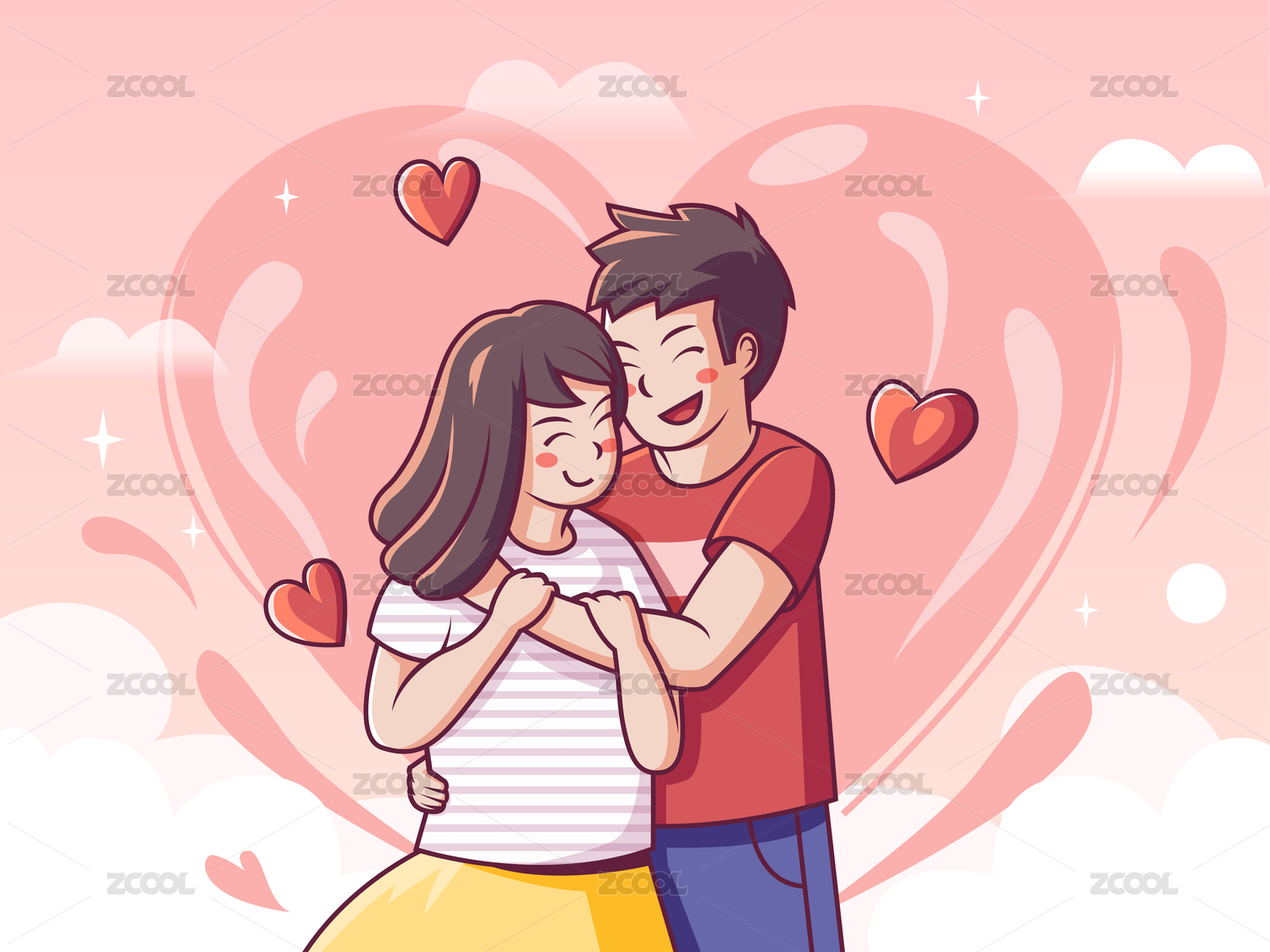 情人互相拥抱矢量插画