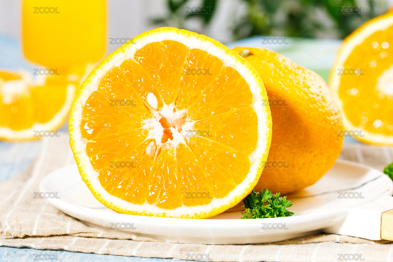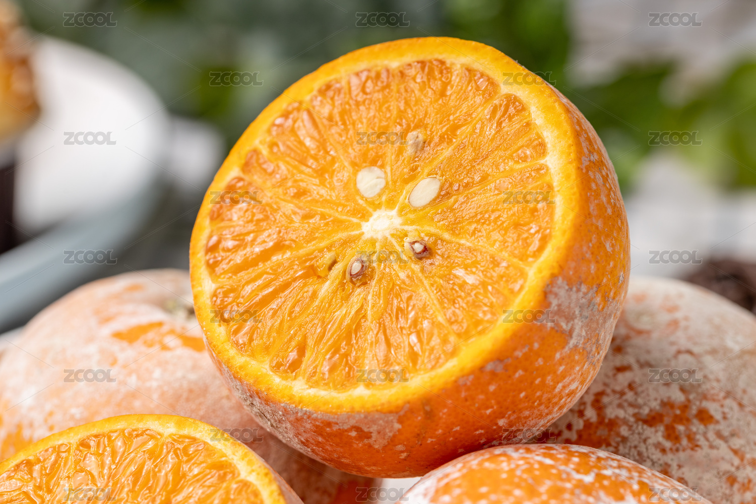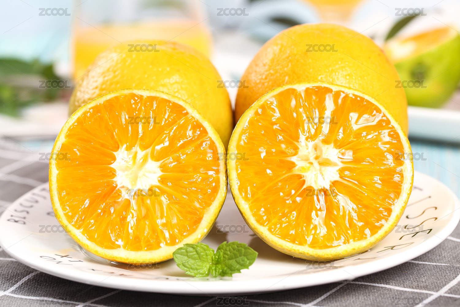 深底上放着一个完整的清香橘和半边切面蜜橘