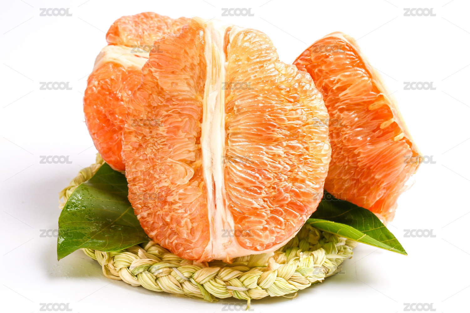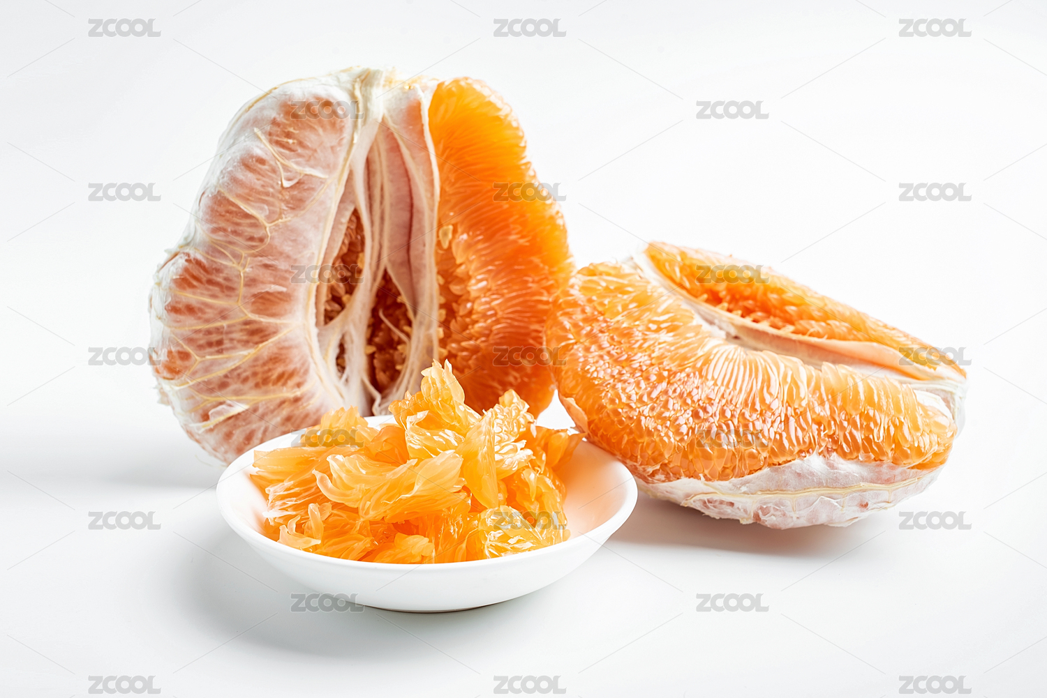 金柚子果肉在白背景上