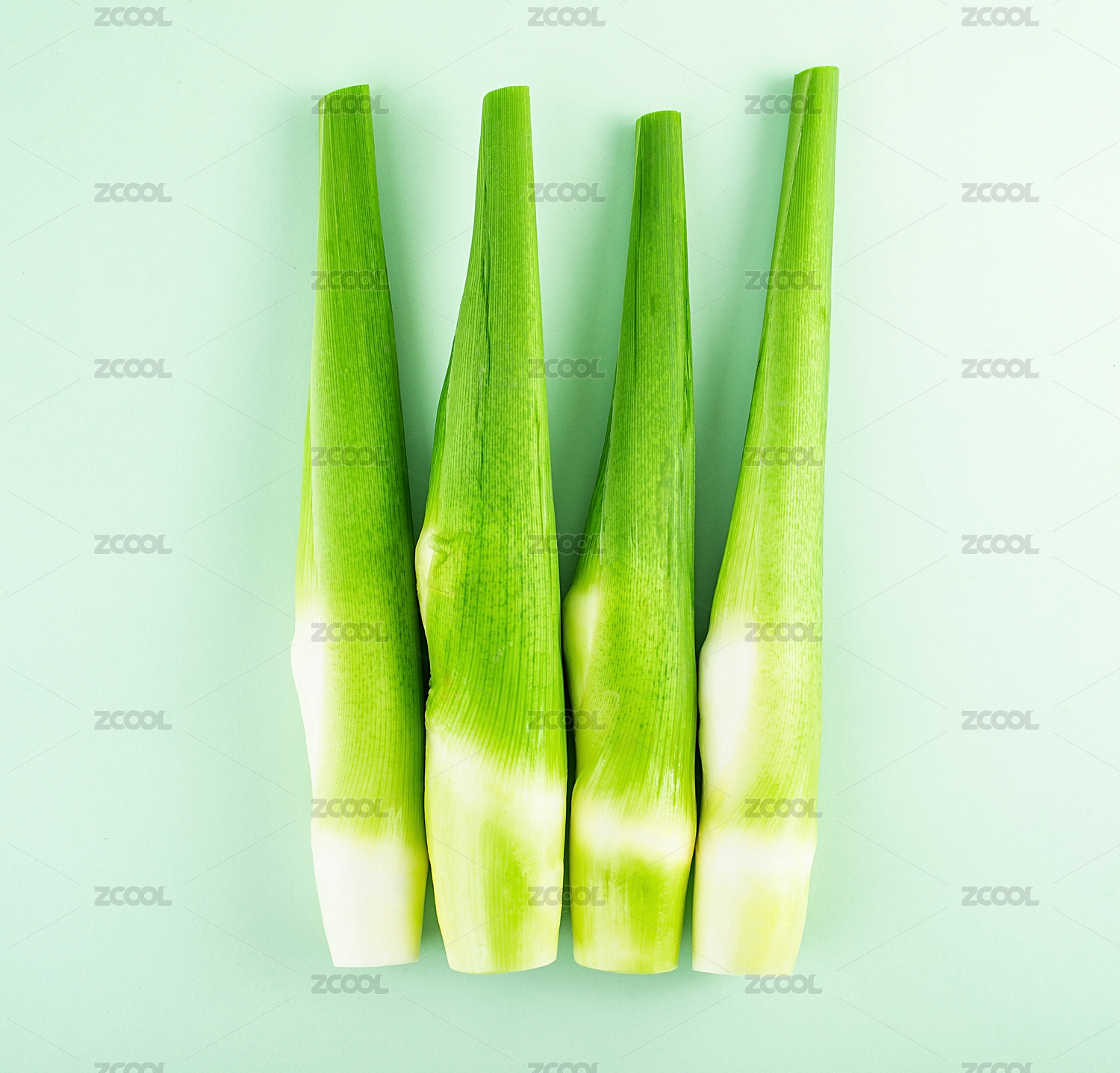 新鲜的蔬菜 绿色的调味料大葱切成段