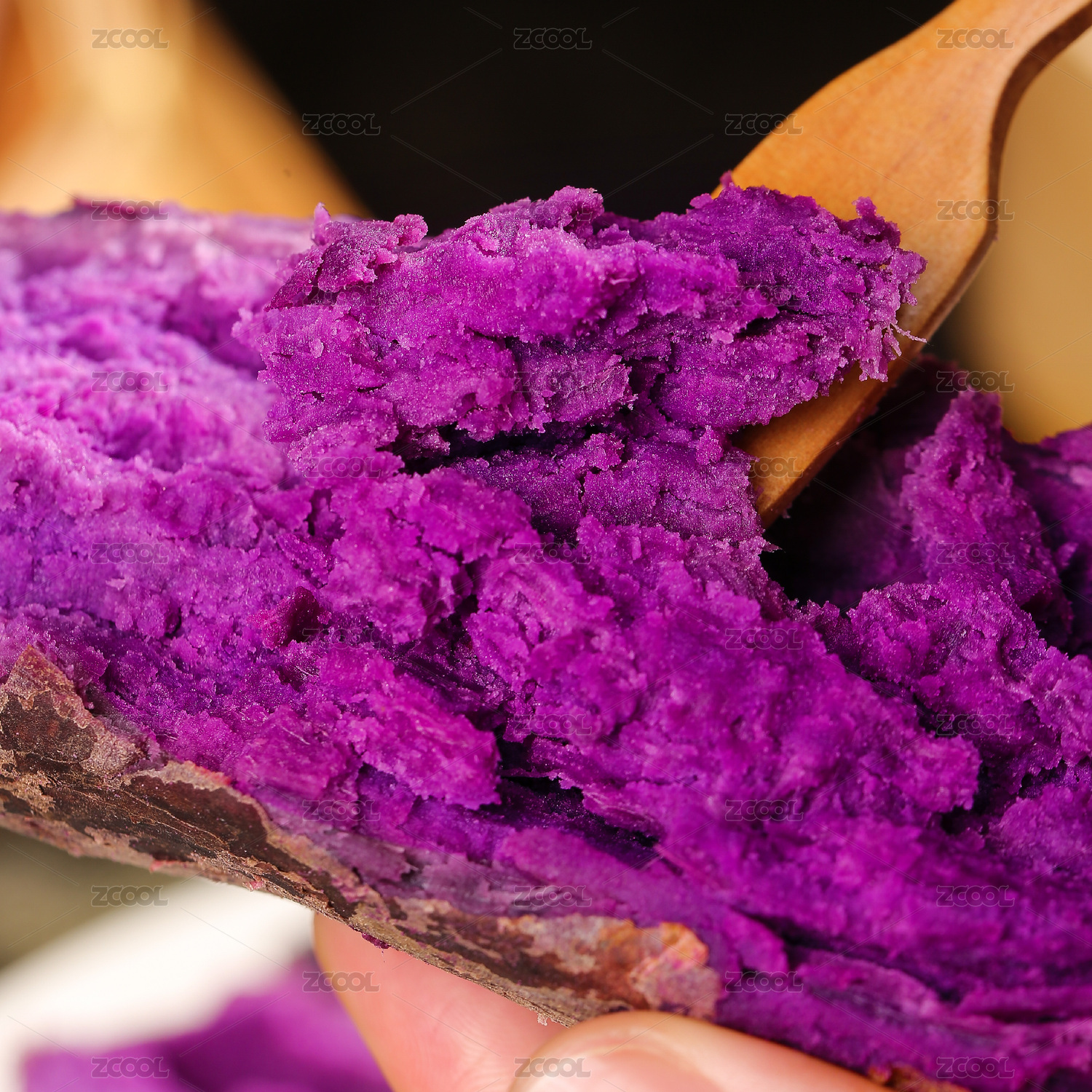 勺子上挖着粉糯紫薯
