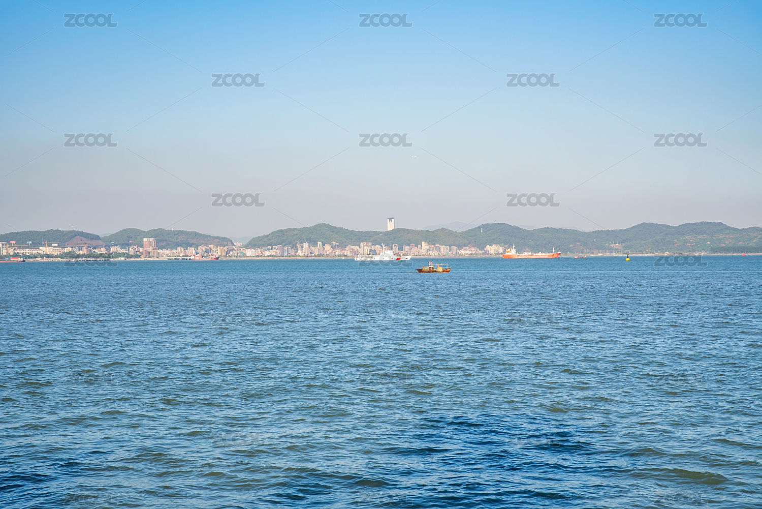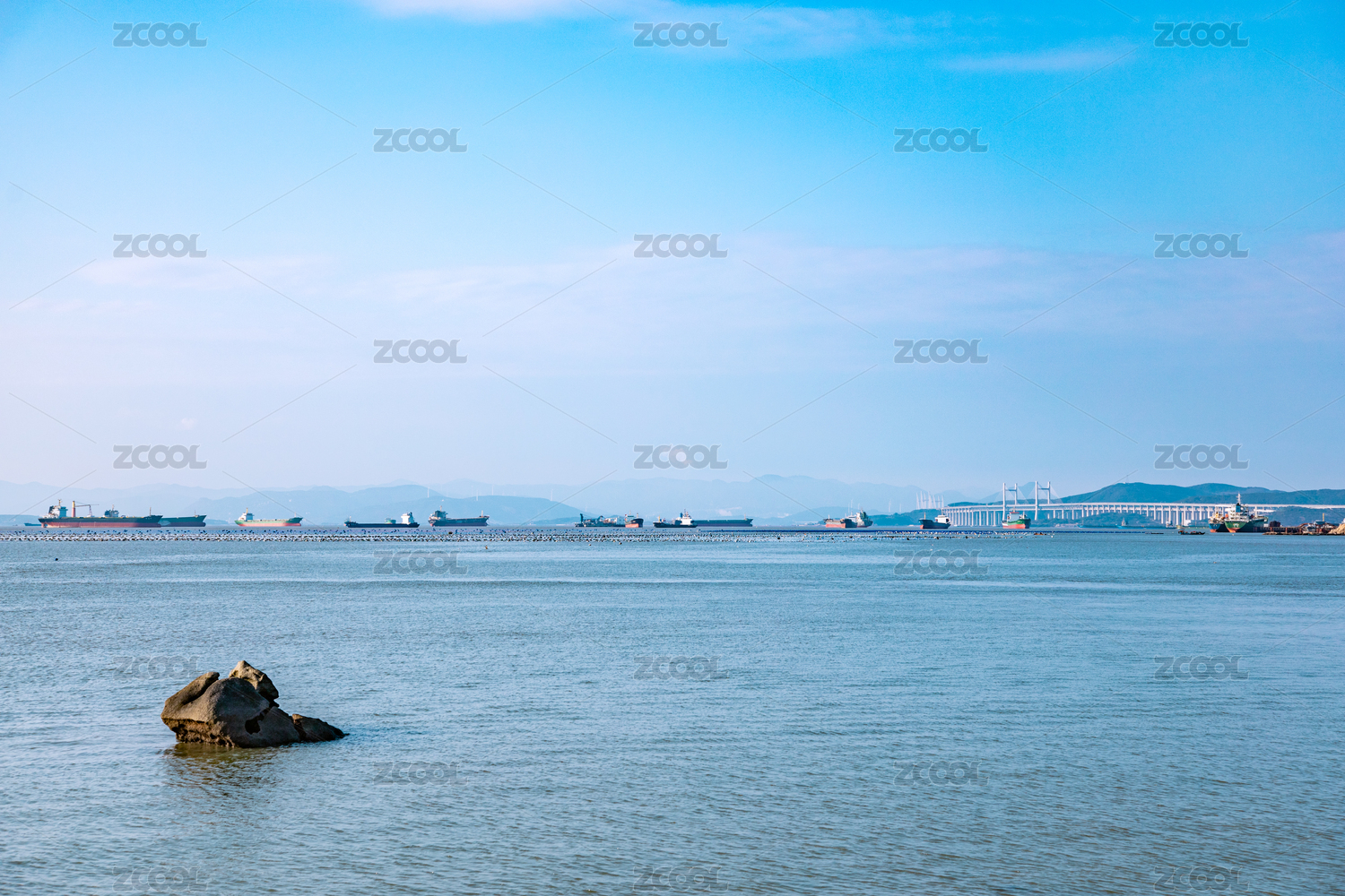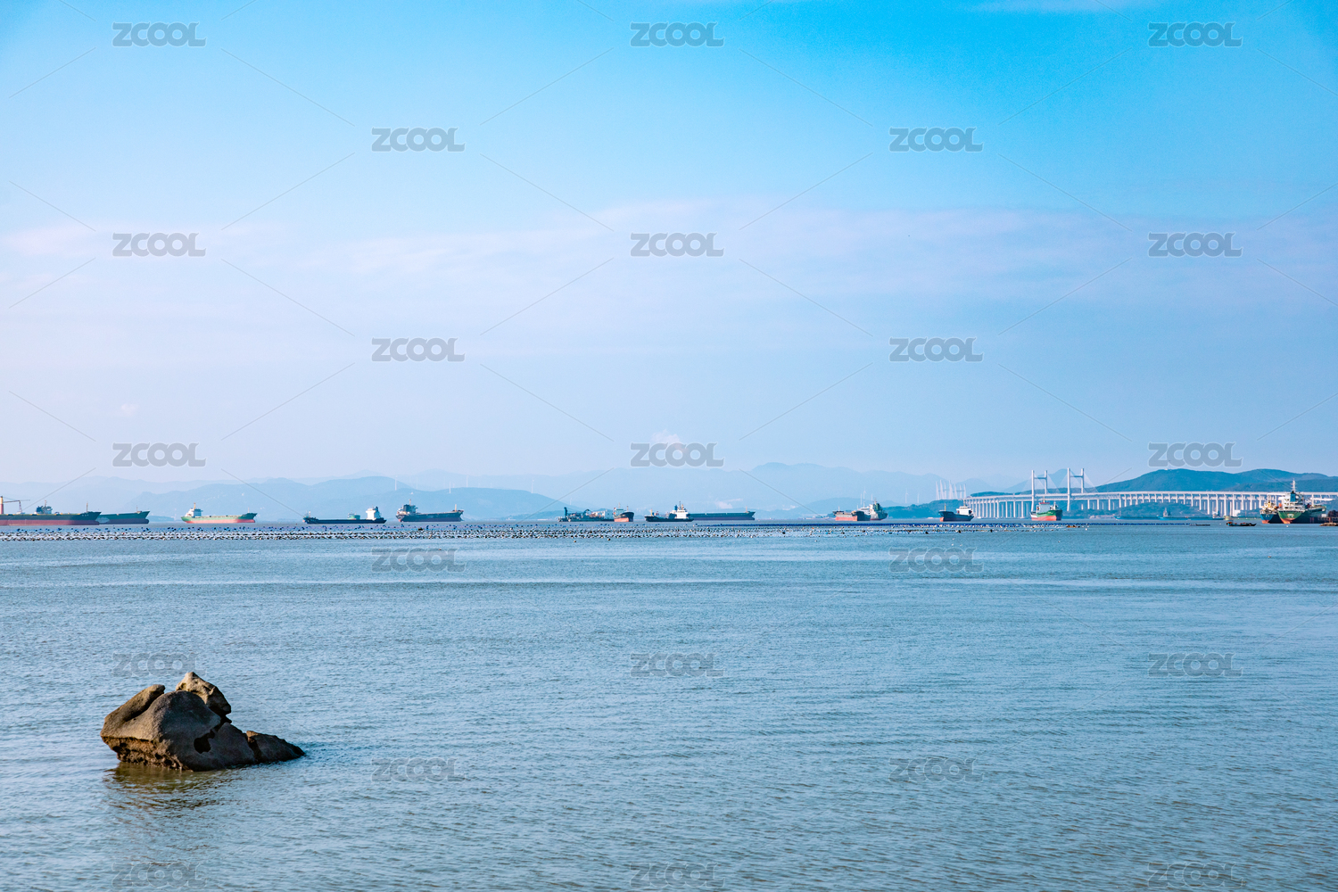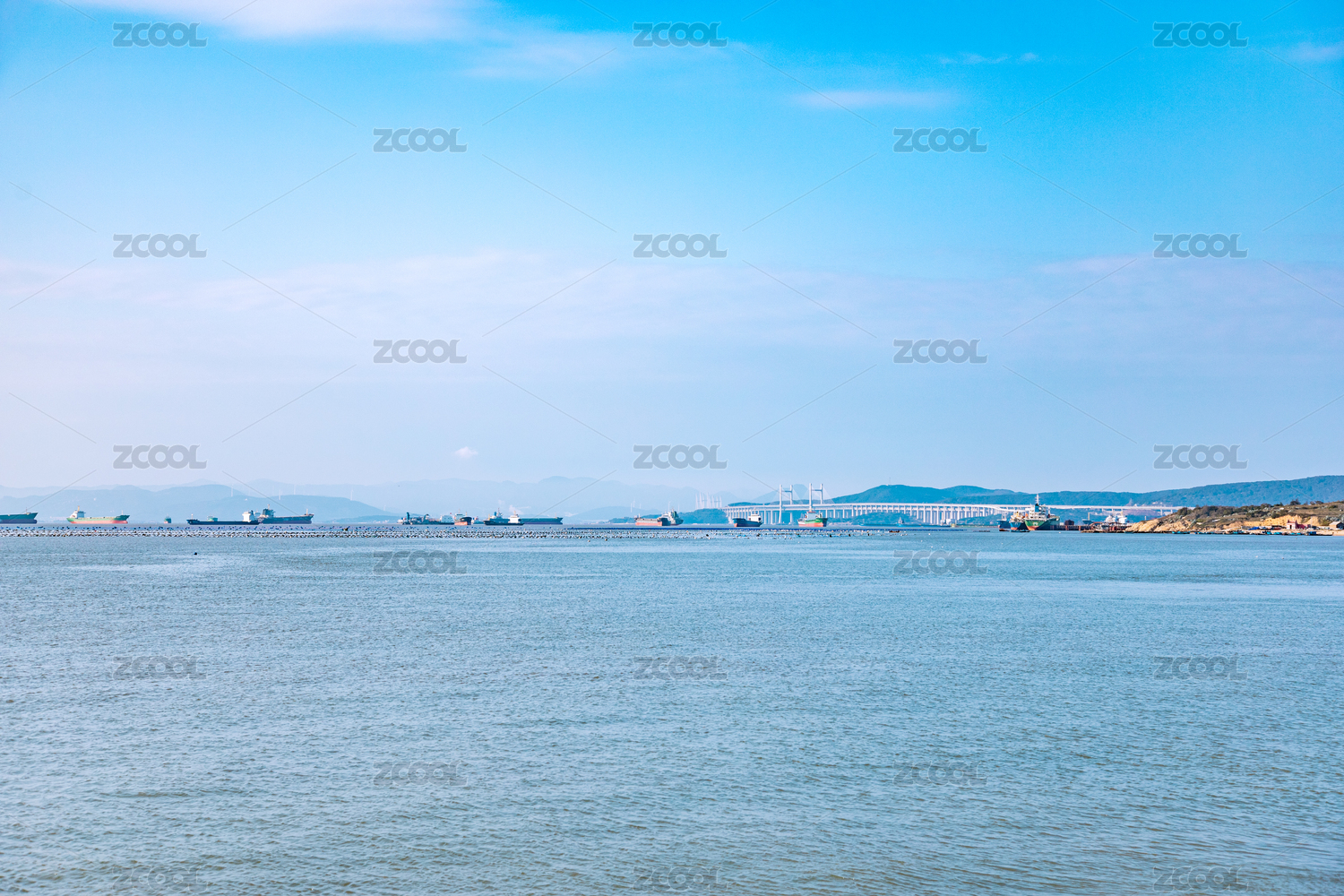 福建省福州市平潭岛-蓝天白云下的海港码头
