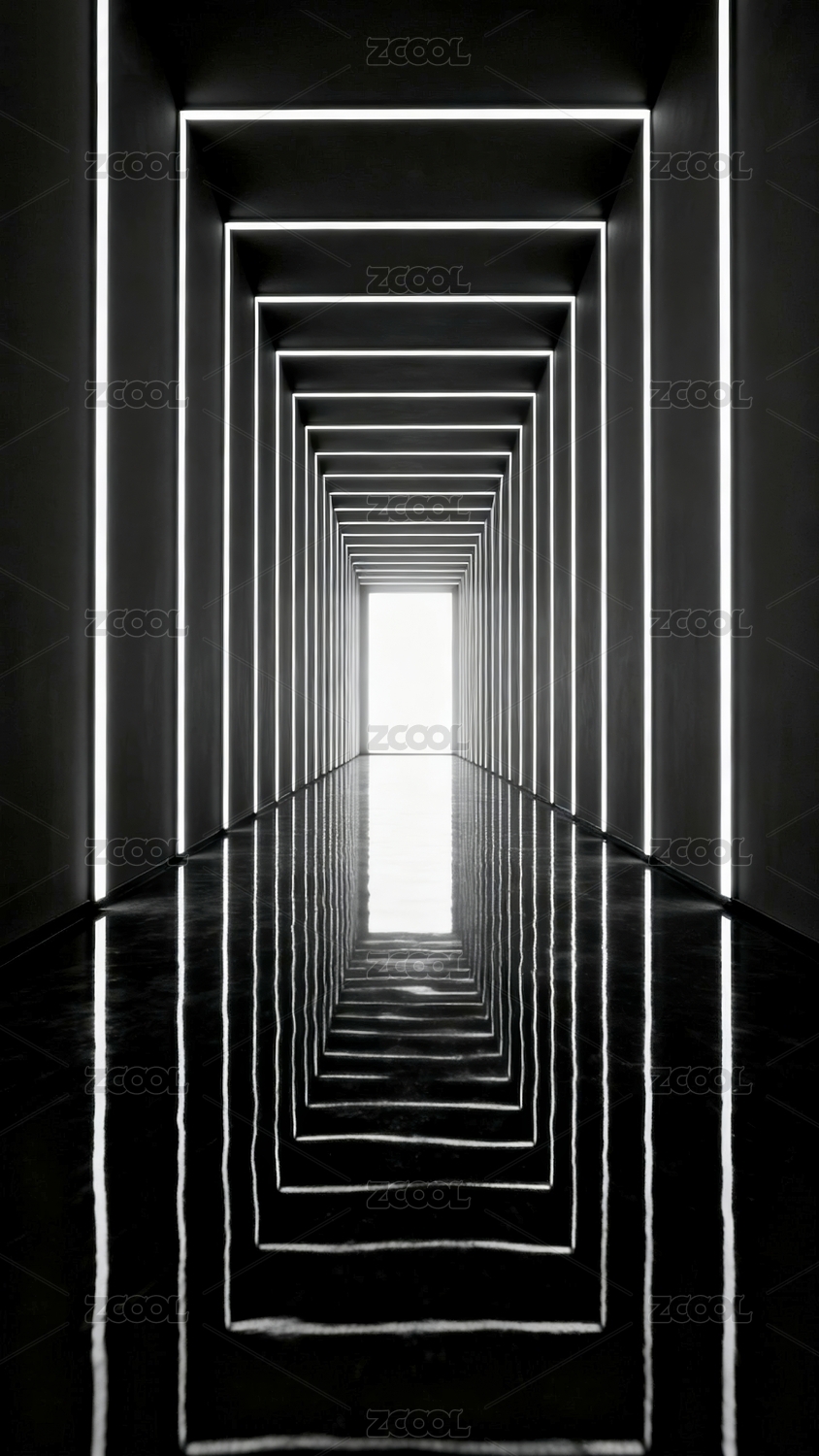 无限延伸的霓虹方框隧道