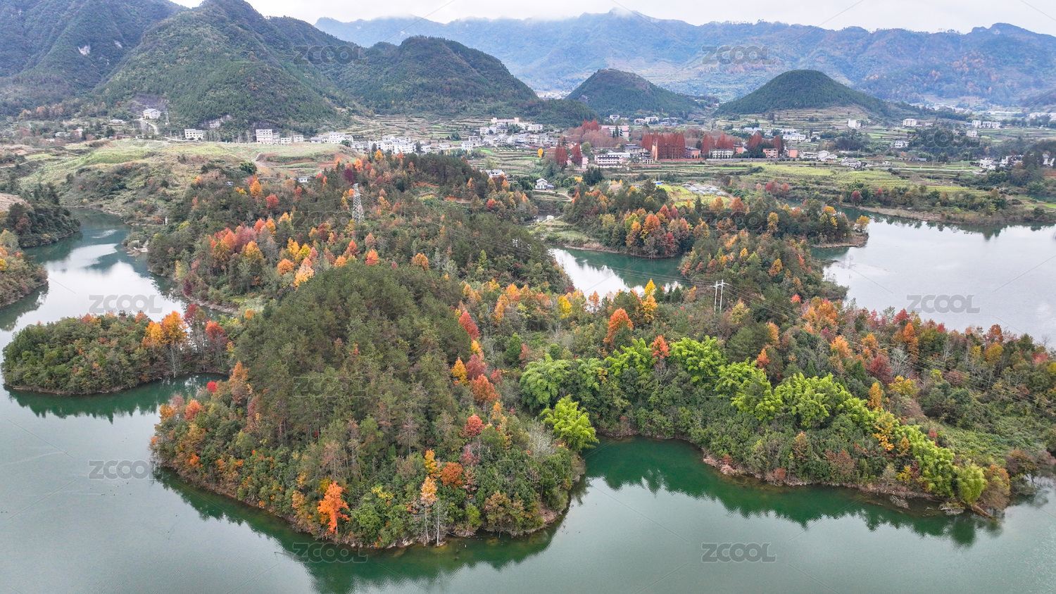 江西上饶婺源月亮湾游船日落晨雾航拍