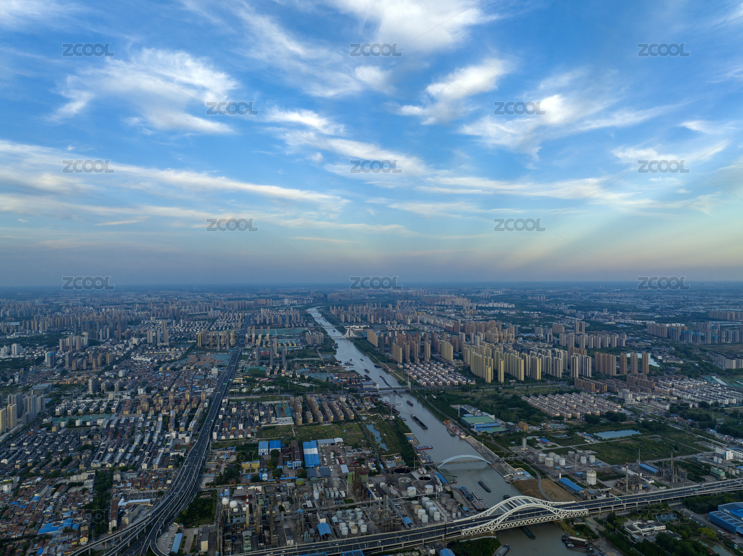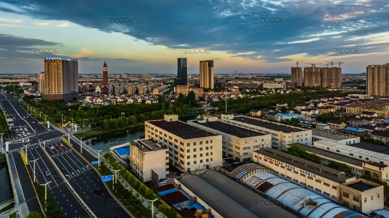 苏州太仓城市晚霞风光