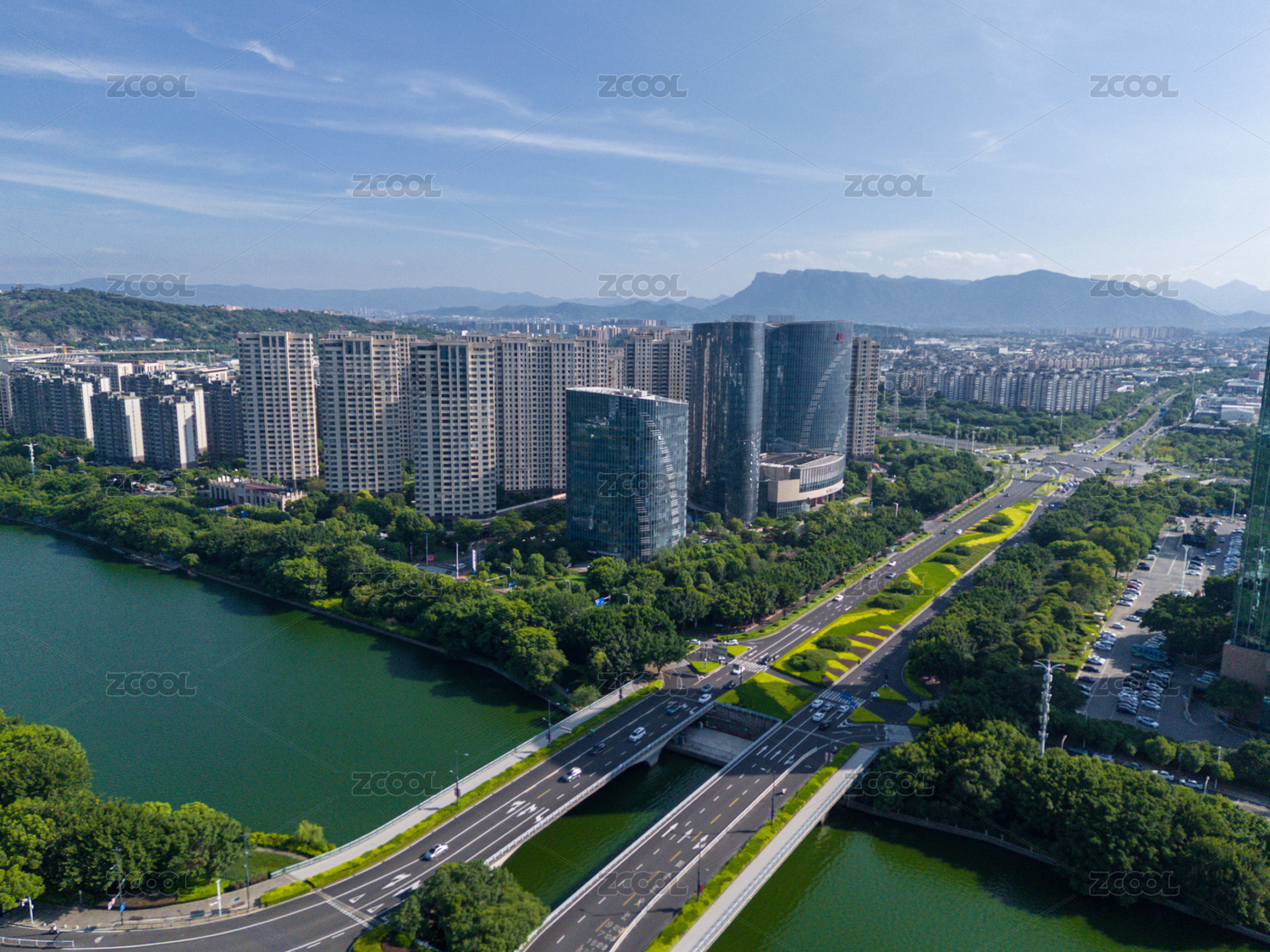 绍兴市上虞区曹娥江两岸城市风光航拍