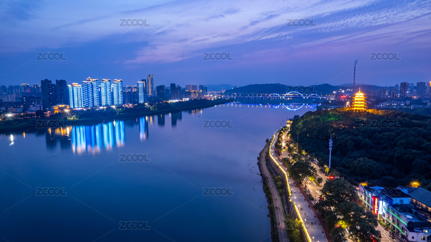 中国株洲湘江河岸夜景