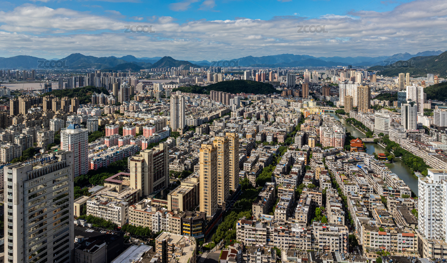 黄昏时的龙岩城区天际线,中国福建龙岩