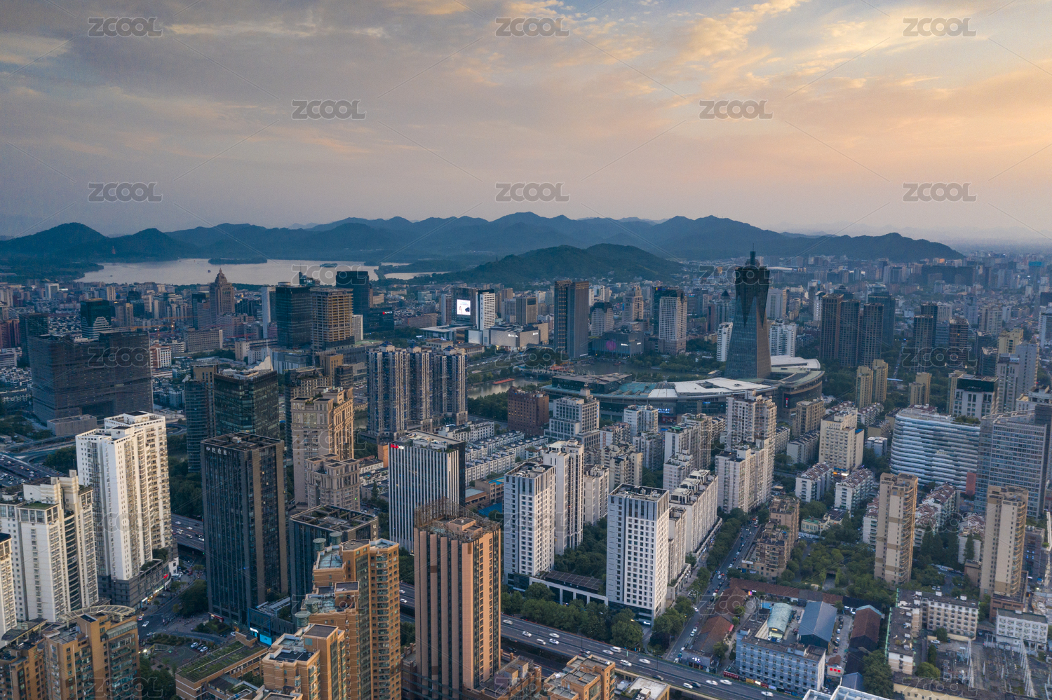 浙江省杭州上城区城区秋石高架晨曦航拍