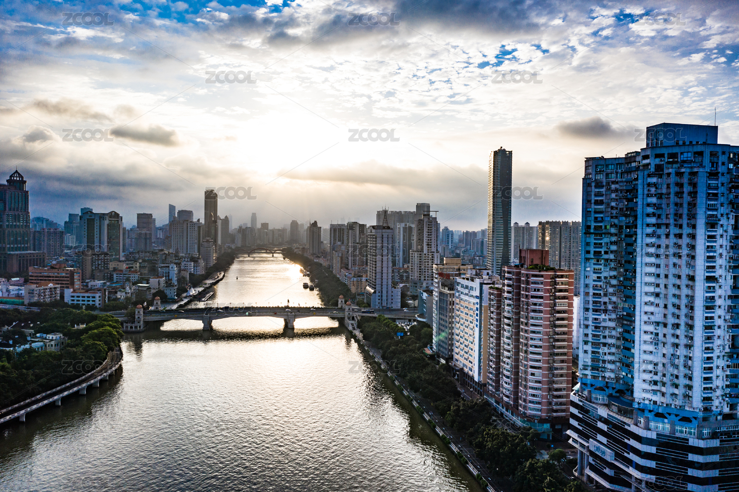 航拍视角,广州,珠江,城市,都市风光,旅行,旅游,天空,晴朗,无人