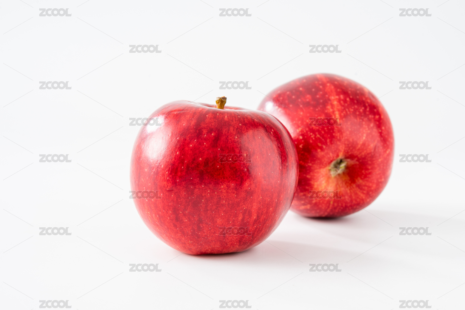 白色背景上摆放着的新鲜的红富士苹果