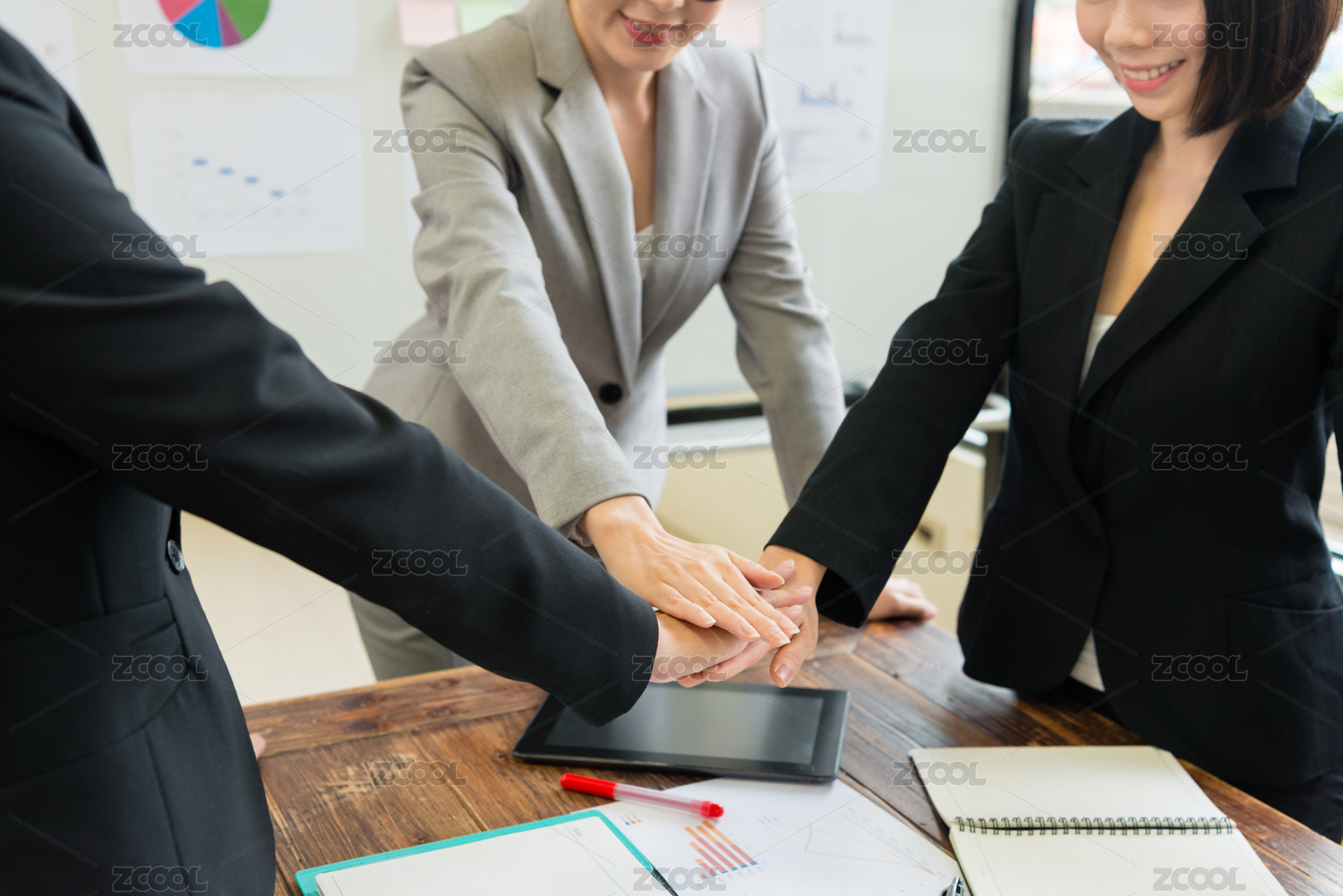 业务人员把双手合在一起,互相鼓励,以新的合作情况。