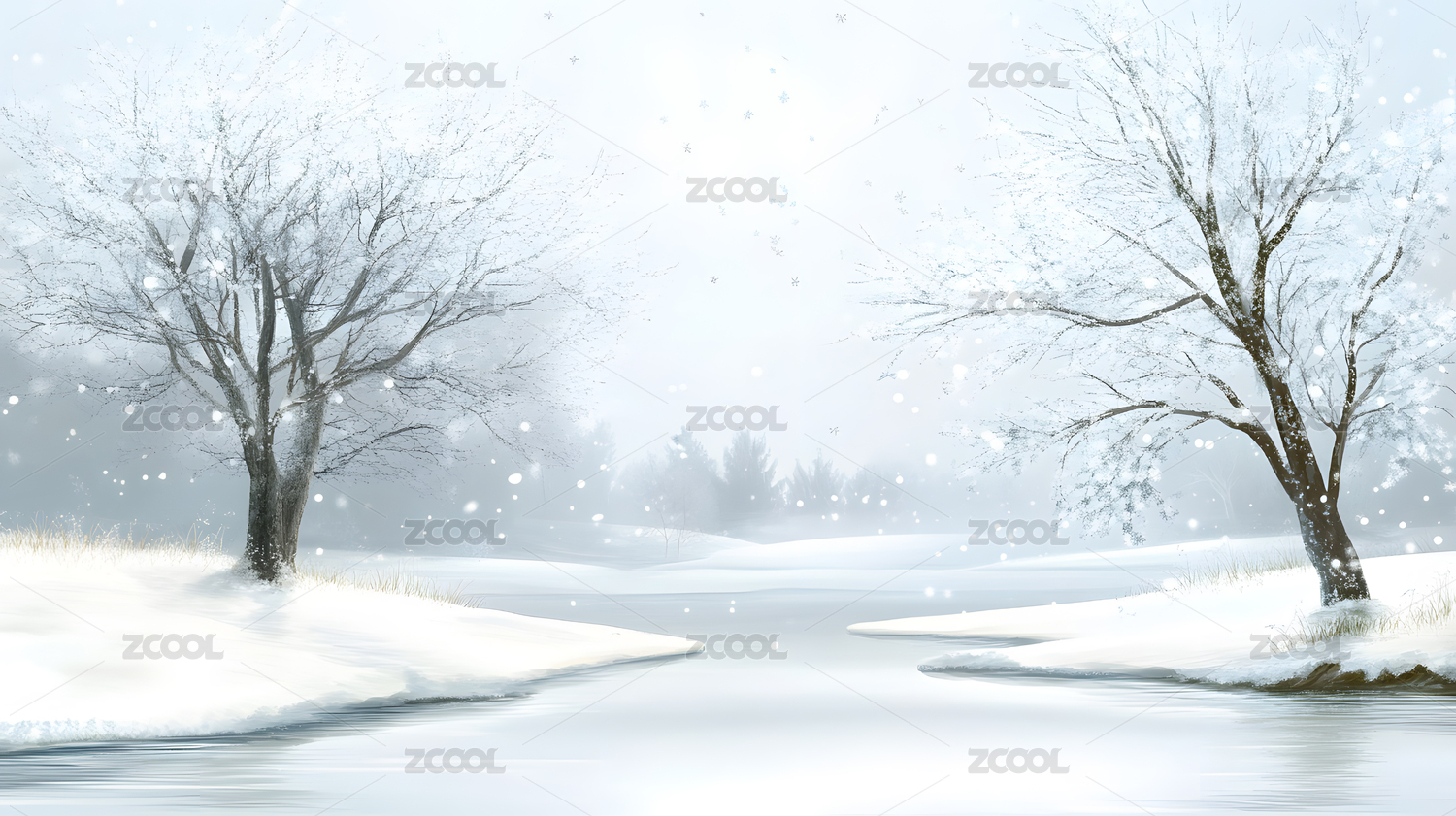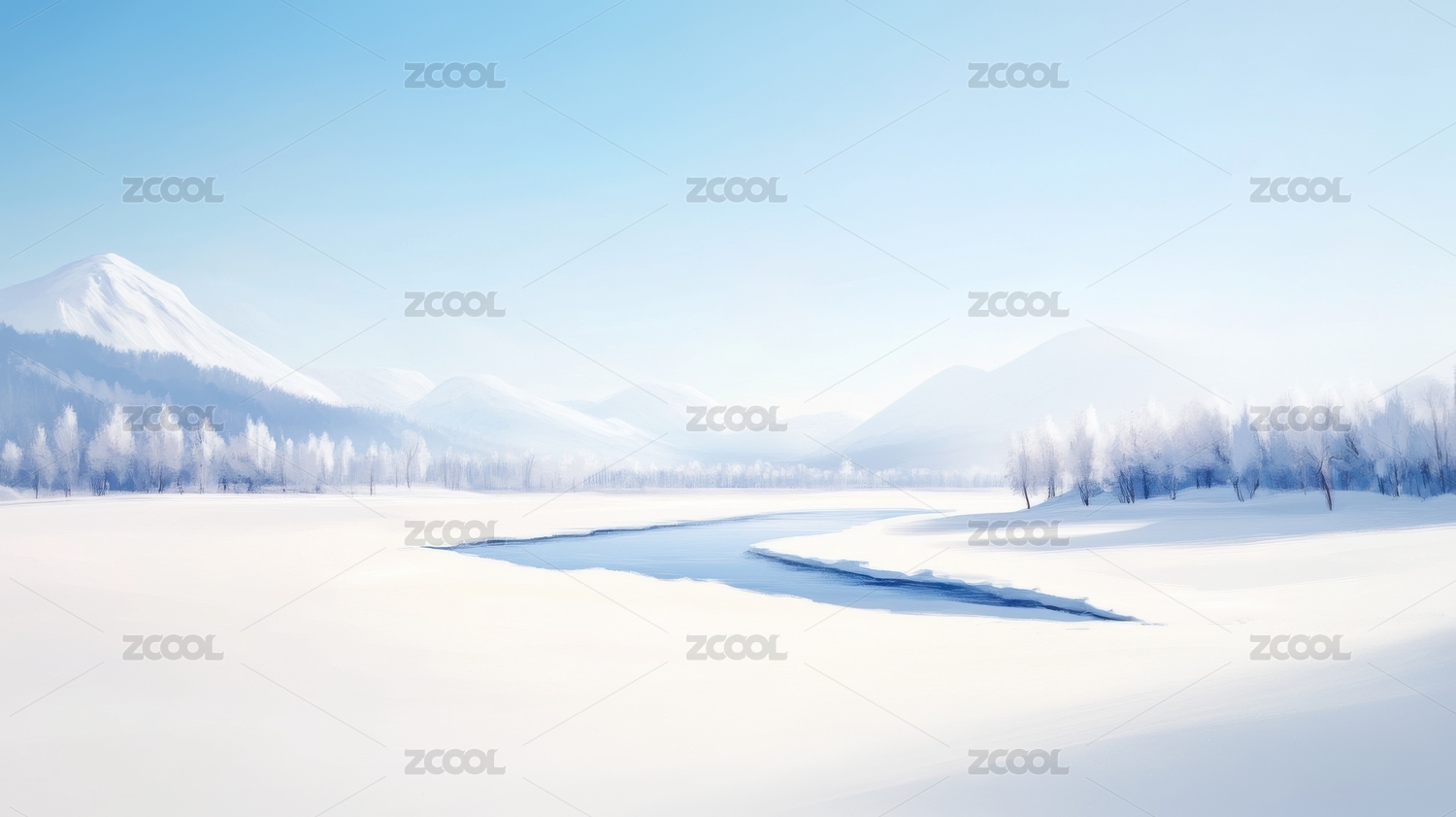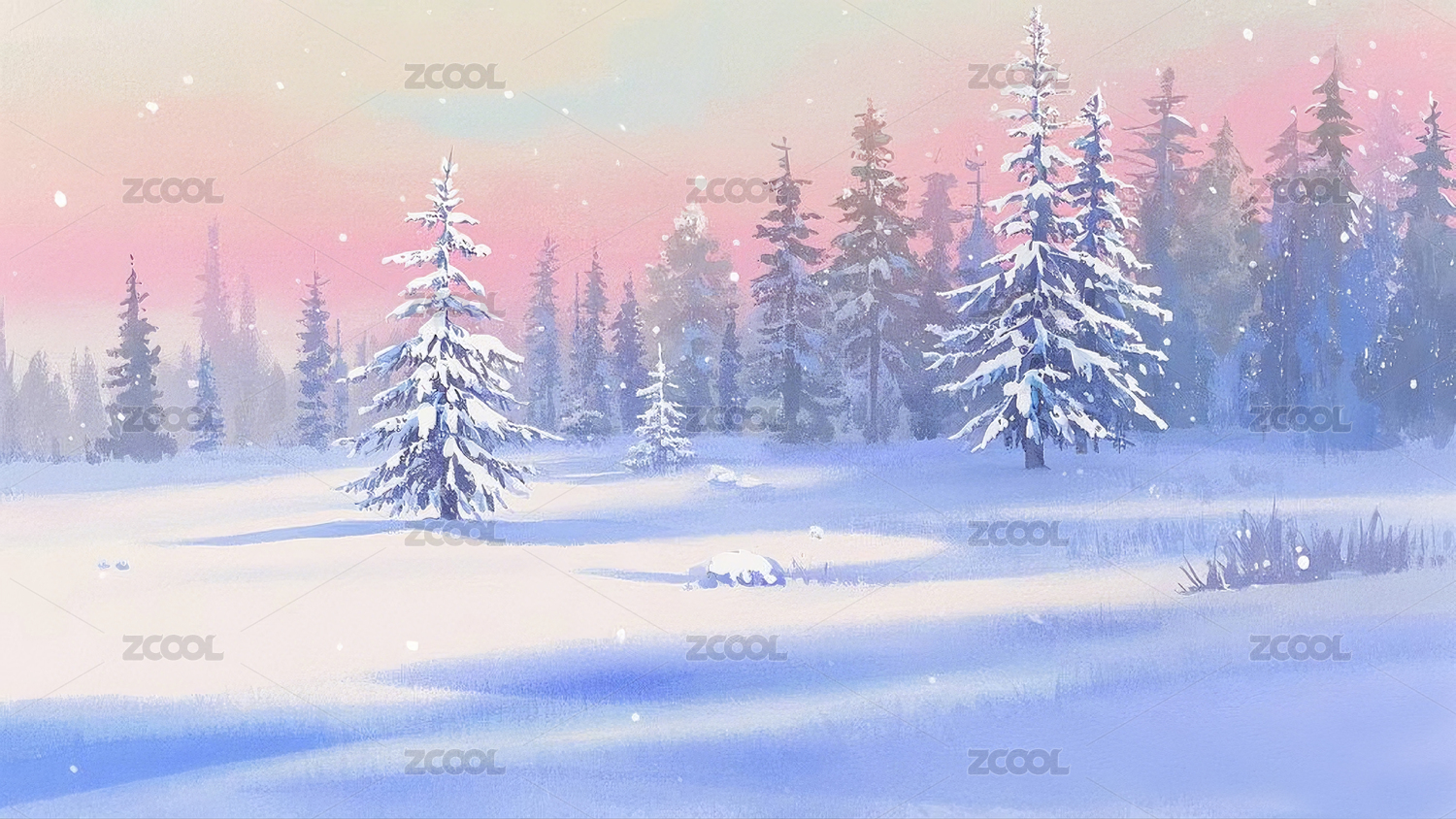 雪地,背景,数字,插画,冬季,雪景,空间,设计,粉黄天空,柔和