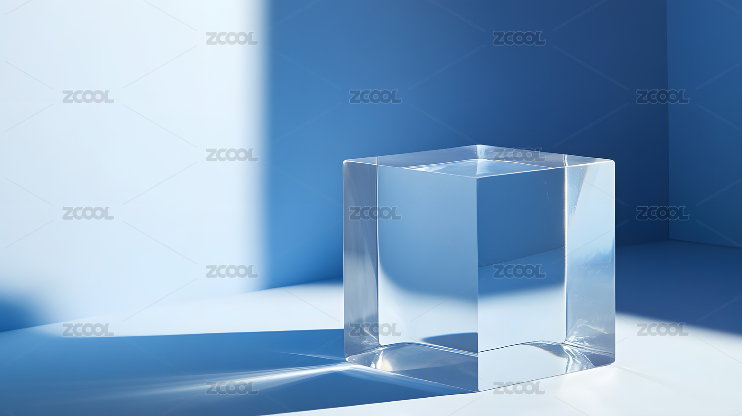 蓝色,背景,立方体,玻璃,材质,光线,反射,正方体,正方形,科技