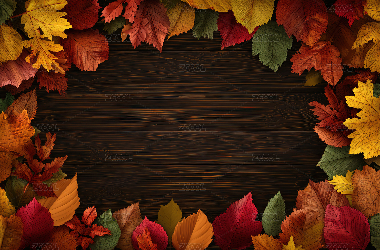秋天, 枫叶, 木纹, 木板, 背景, 红色, 橙色, 黄色, 落叶, 自然
