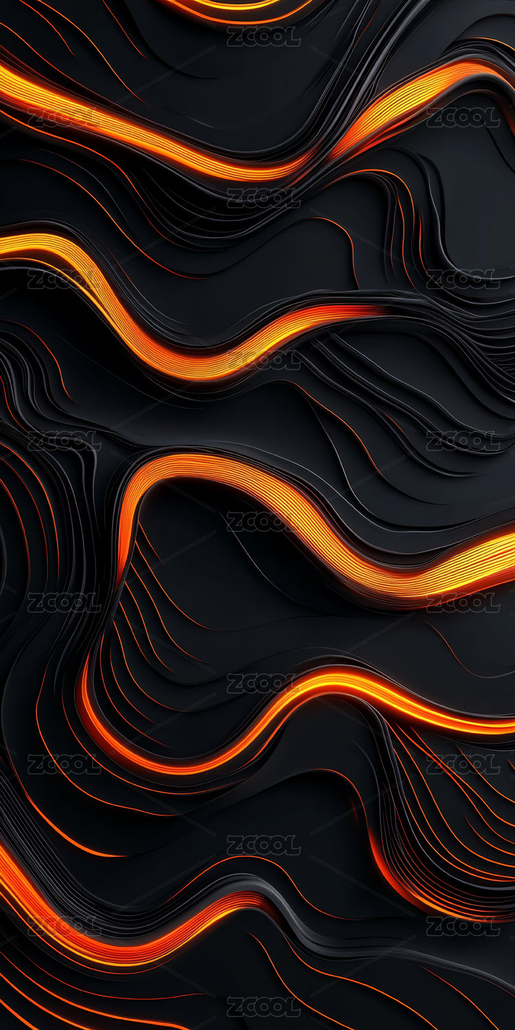 数码黑色漩涡波纹曲线抽象图形海报网页背景