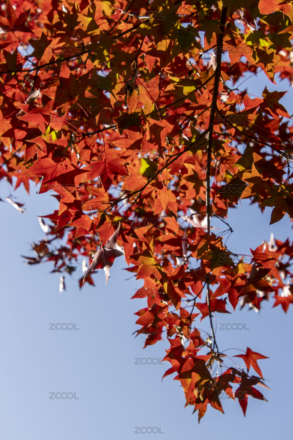 蓝天掩映下的枫叶