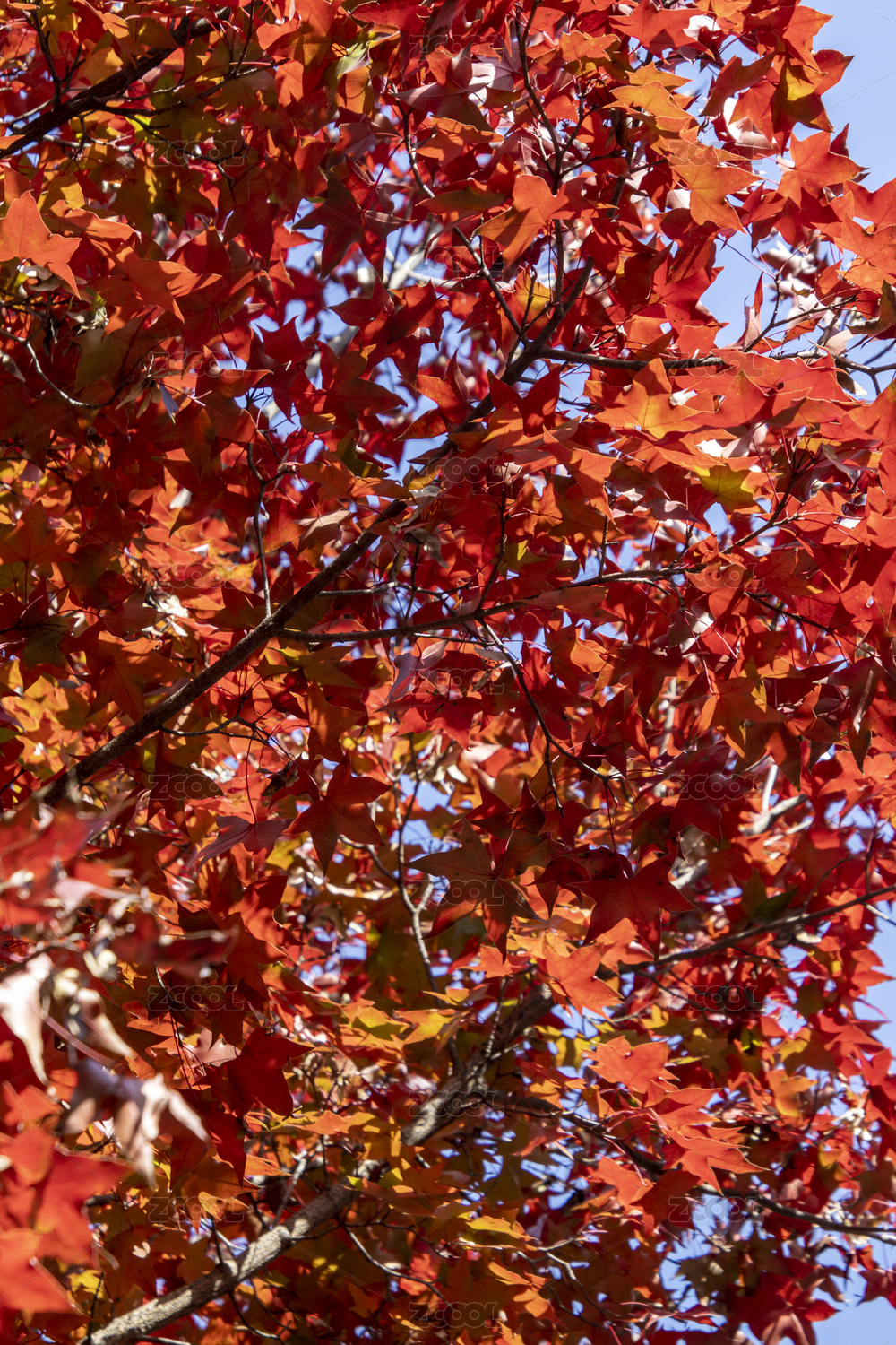 蓝天下变红的枫叶