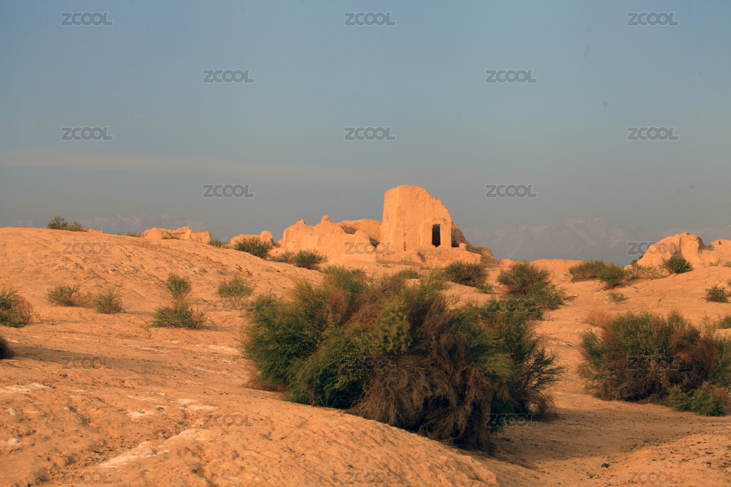 瓜州雕塑长廊荒凉的古老建筑遗址