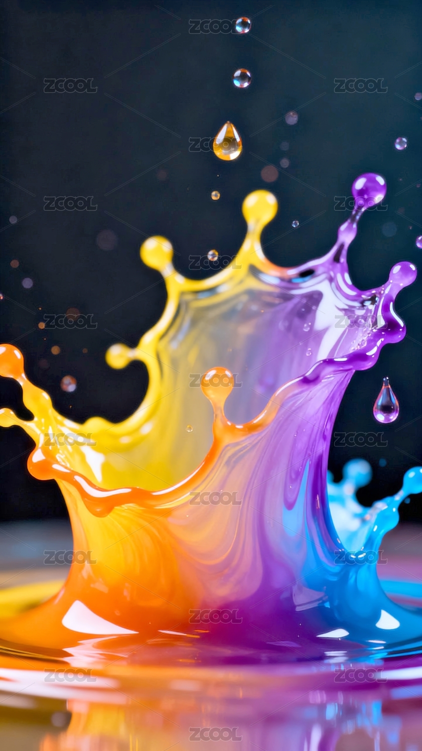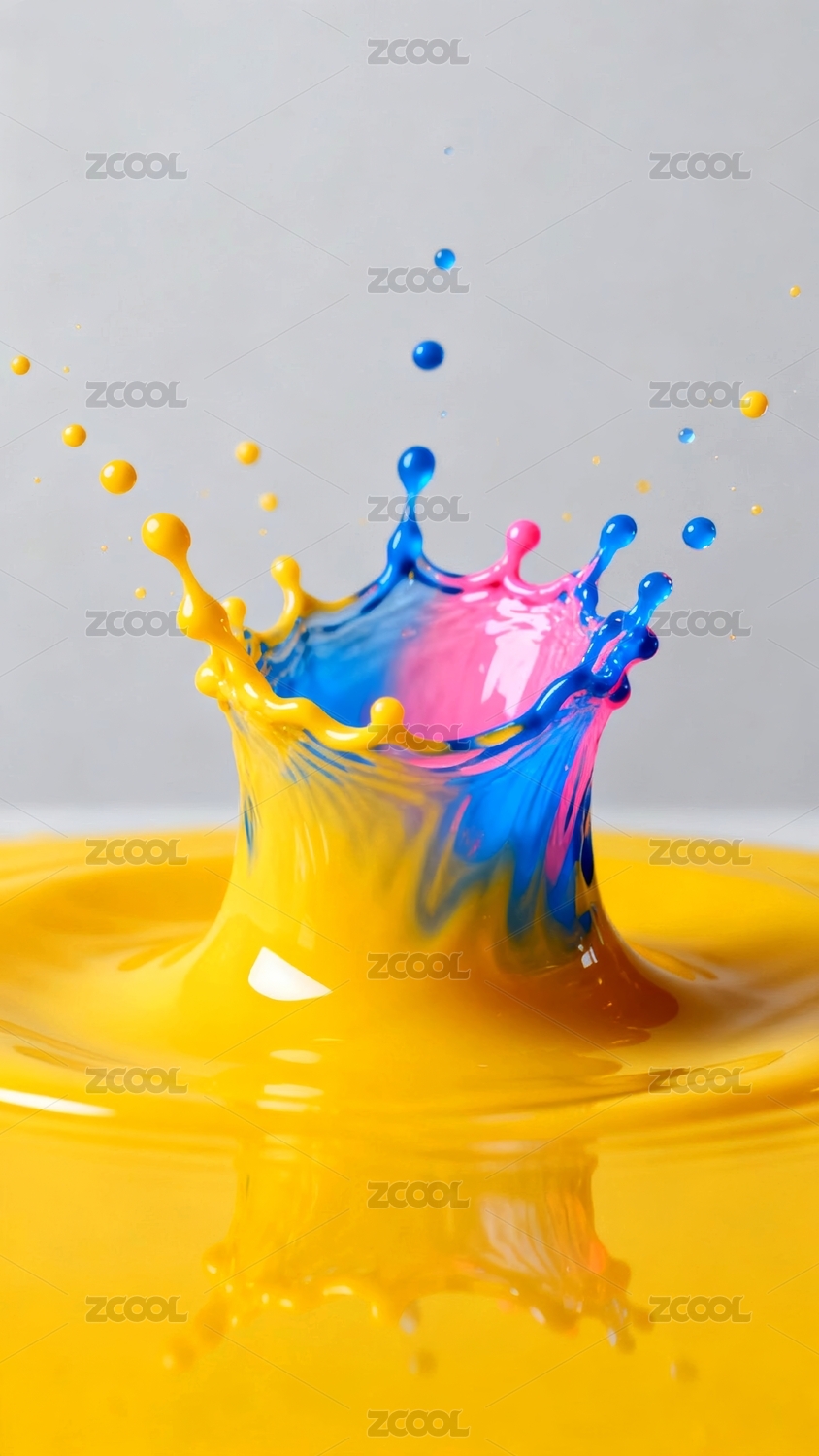 白色背景下彩色颜料油漆在空中飞溅碰撞背景
