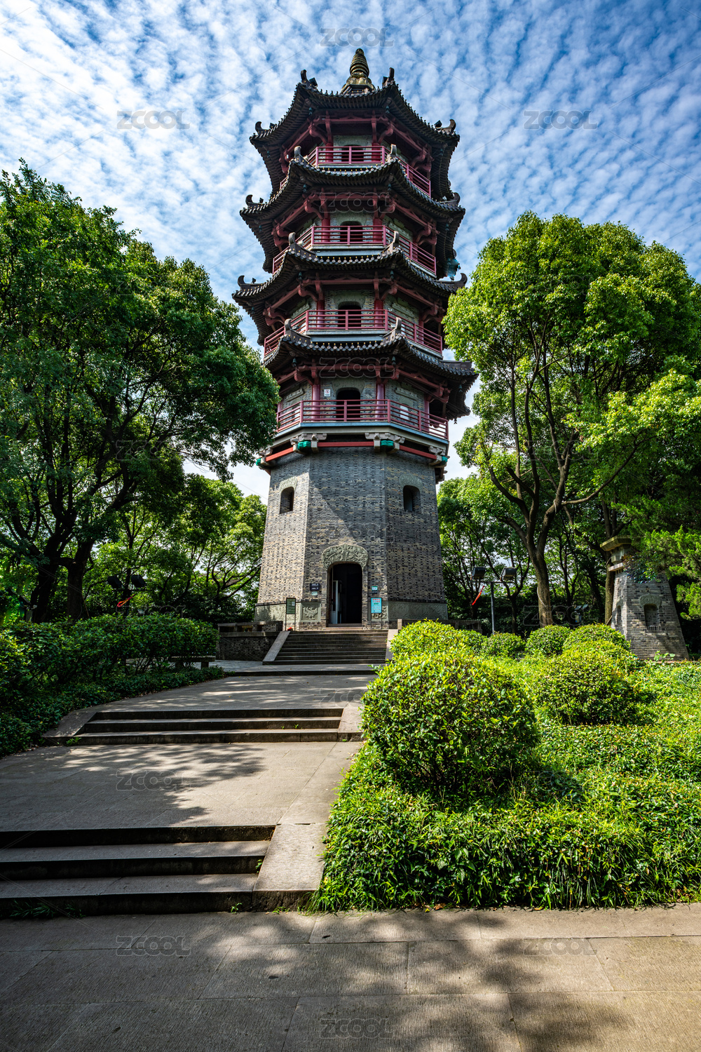 浙江金华义乌钓鱼矶公园山顶上的钓鱼塔