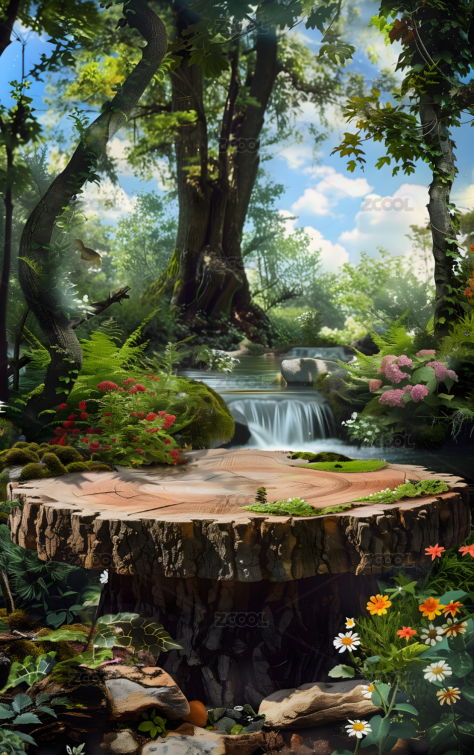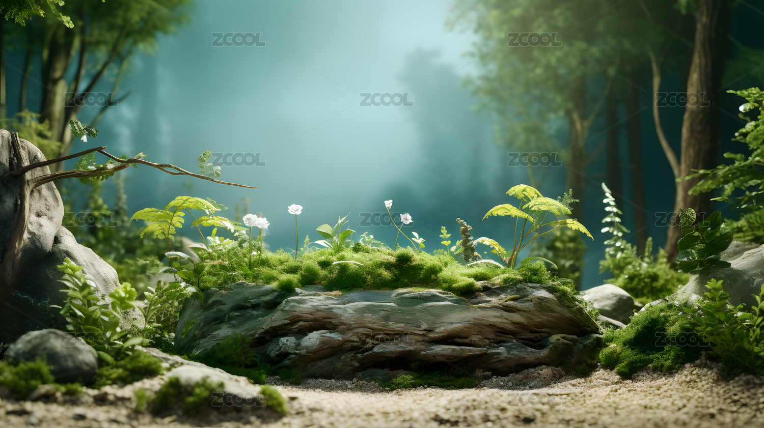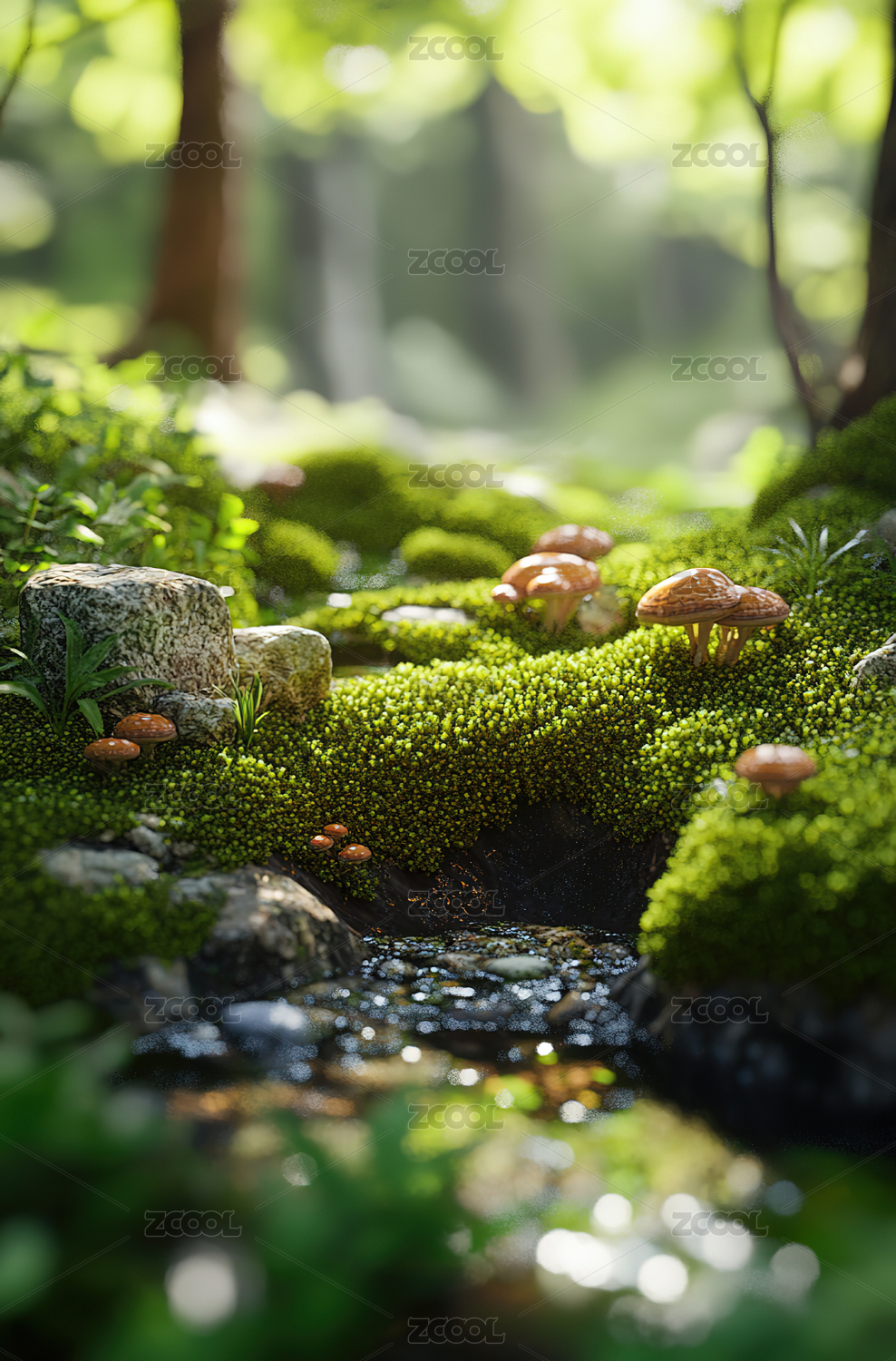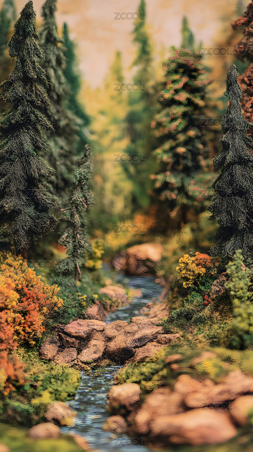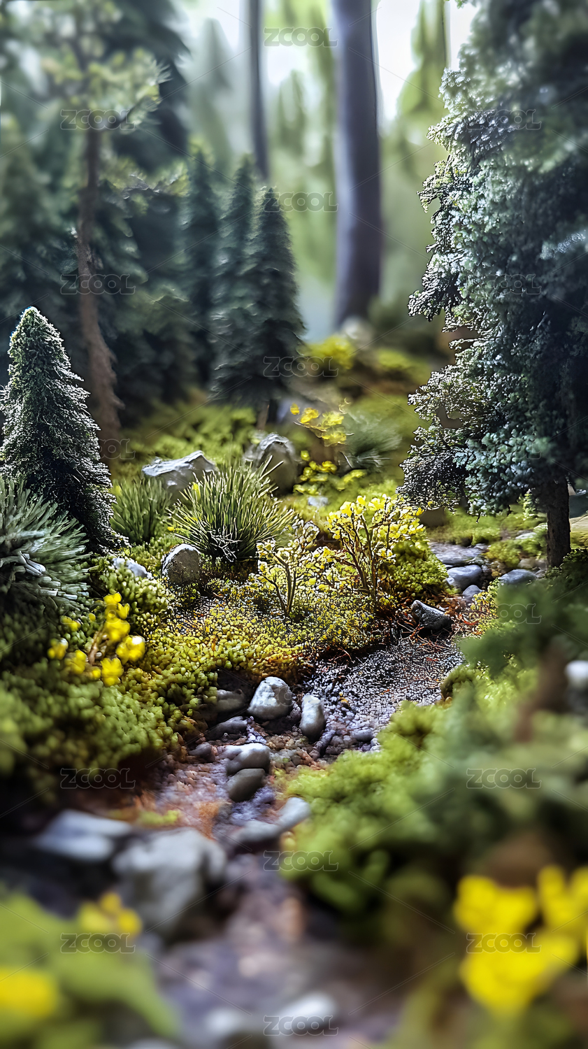 森林溪流与绿植