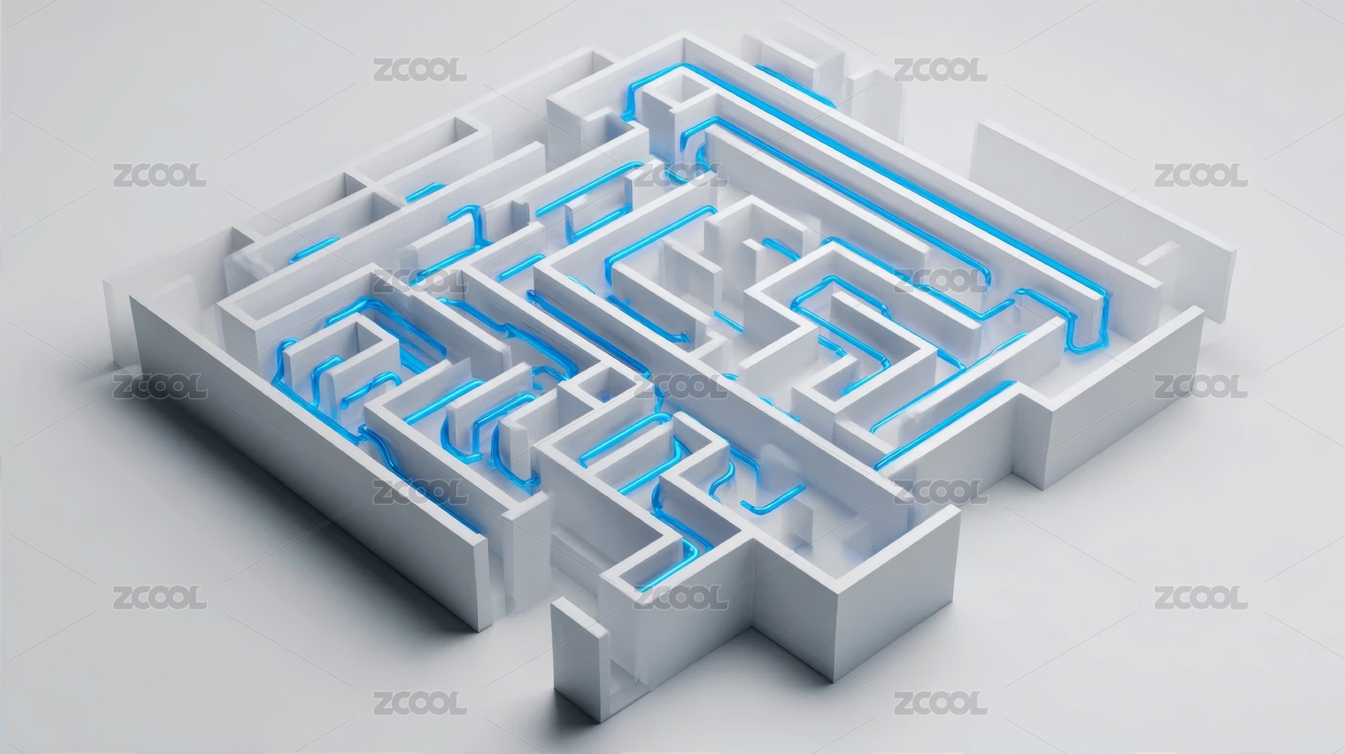 发着蓝光的白色三维立体迷宫