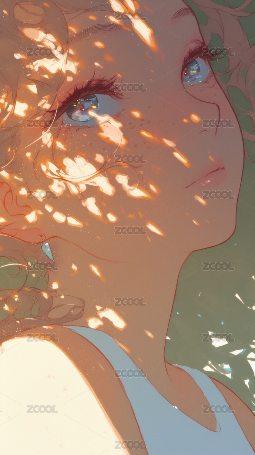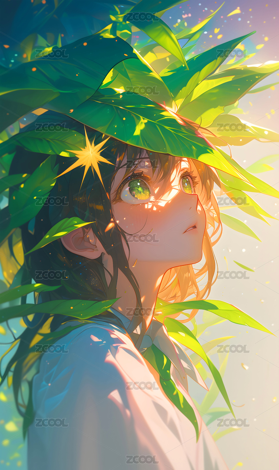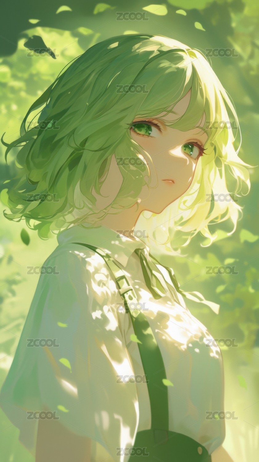 美丽,少女,光,女孩,女人,动漫,梦幻,可爱,卡通,绿色