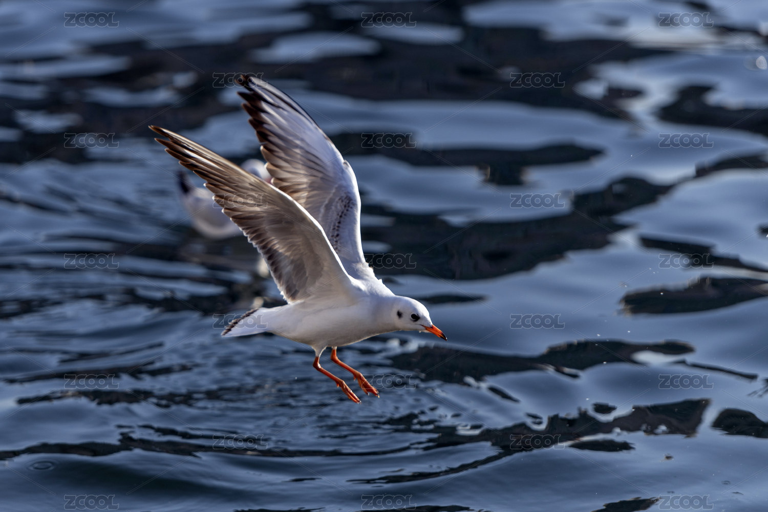 红嘴海鸥在水面上自由飞翔追逐觅食嬉戏