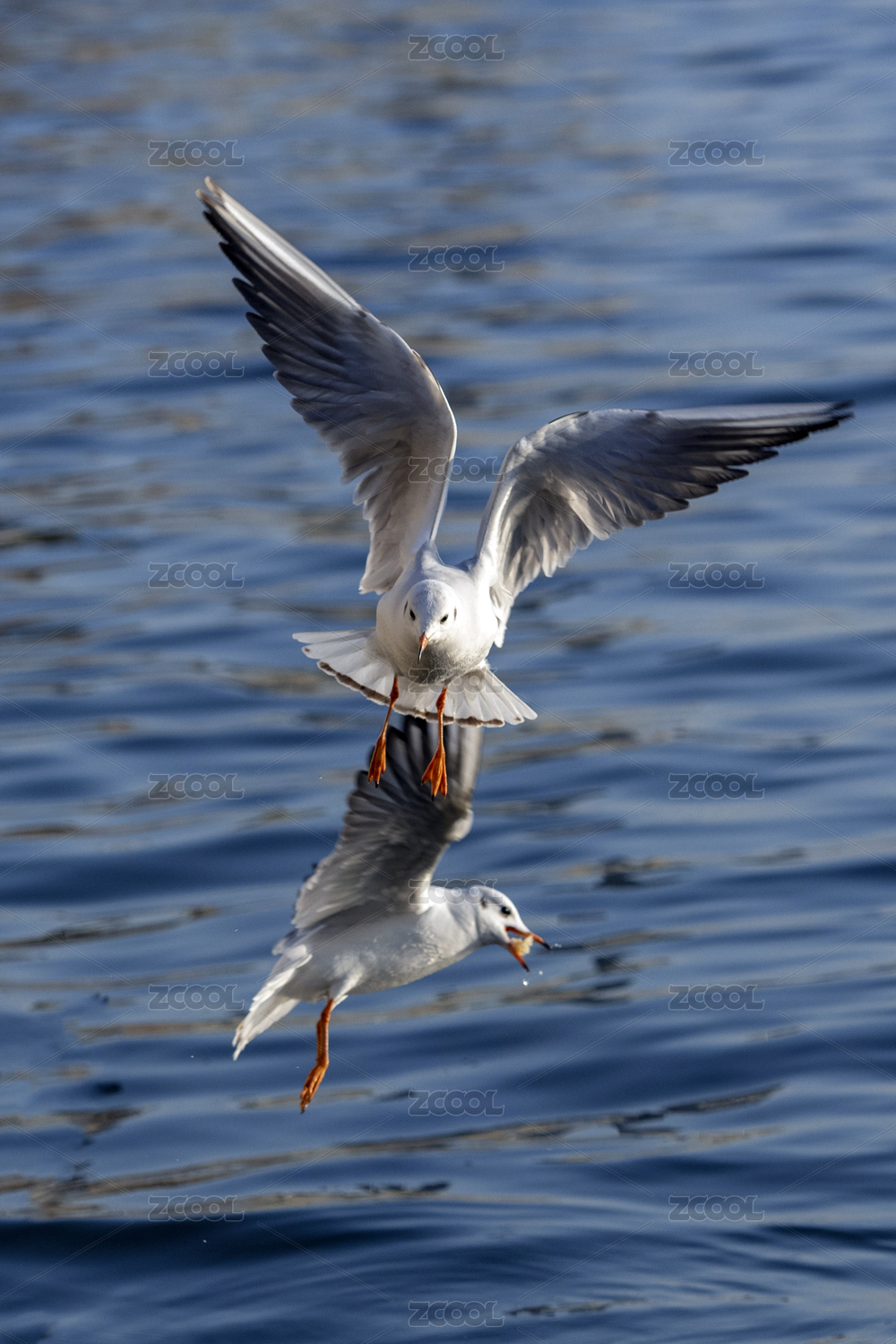 海鸥在海面上自由飞翔追逐觅食嬉戏特写