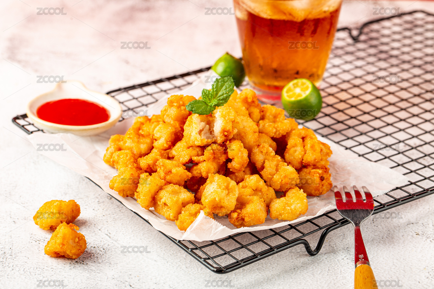 盘子上的酥脆鸡米花
