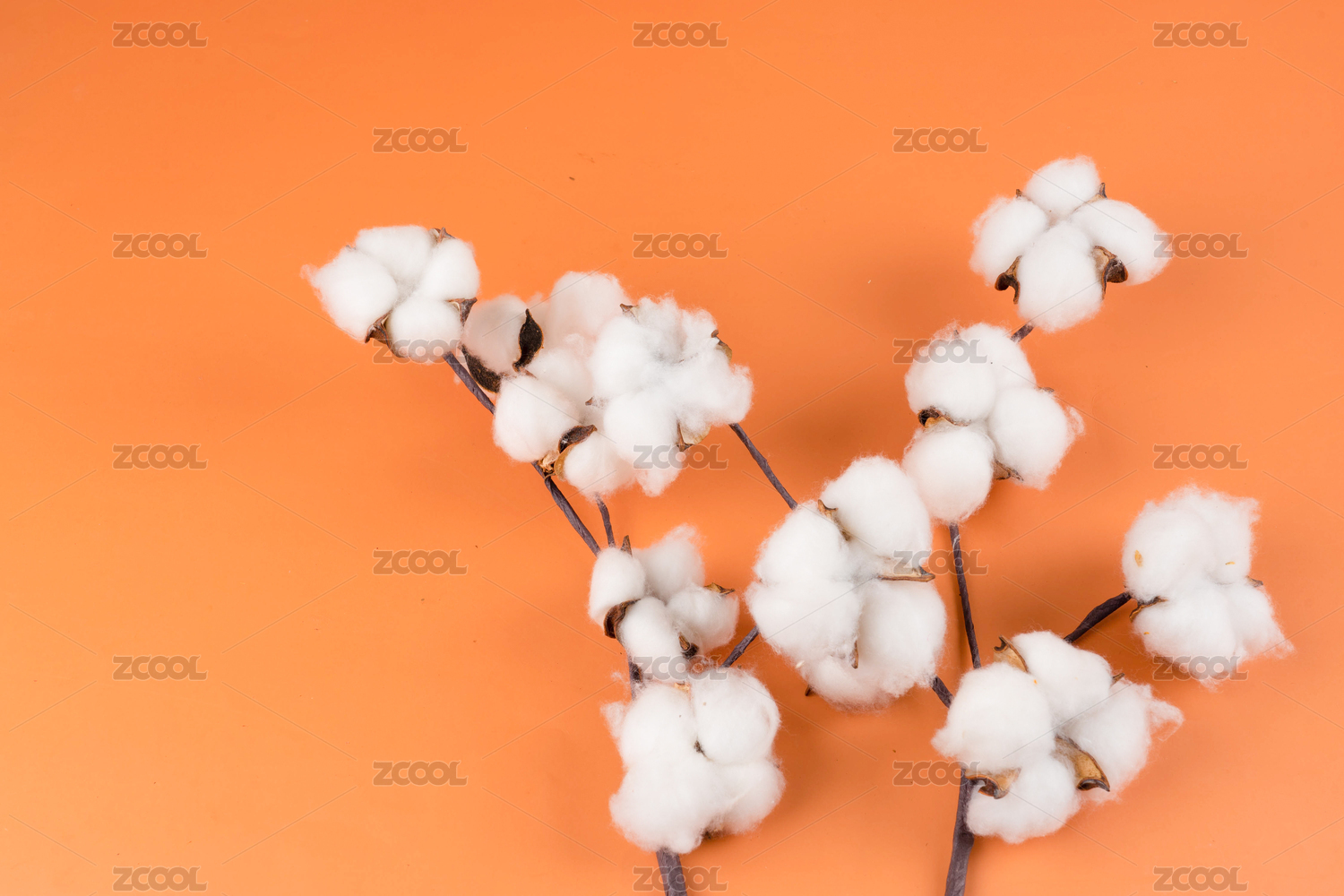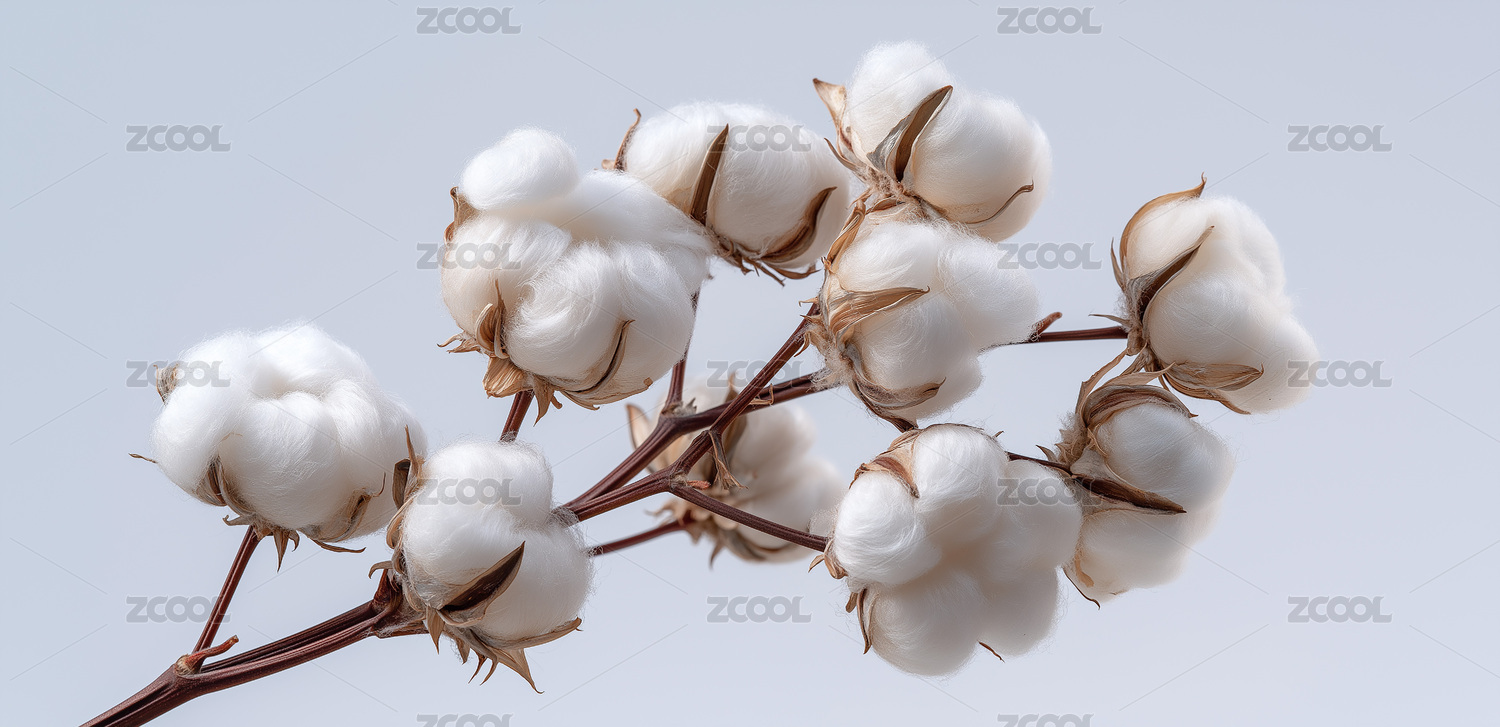 白色棉花枝干特写浅灰色背景