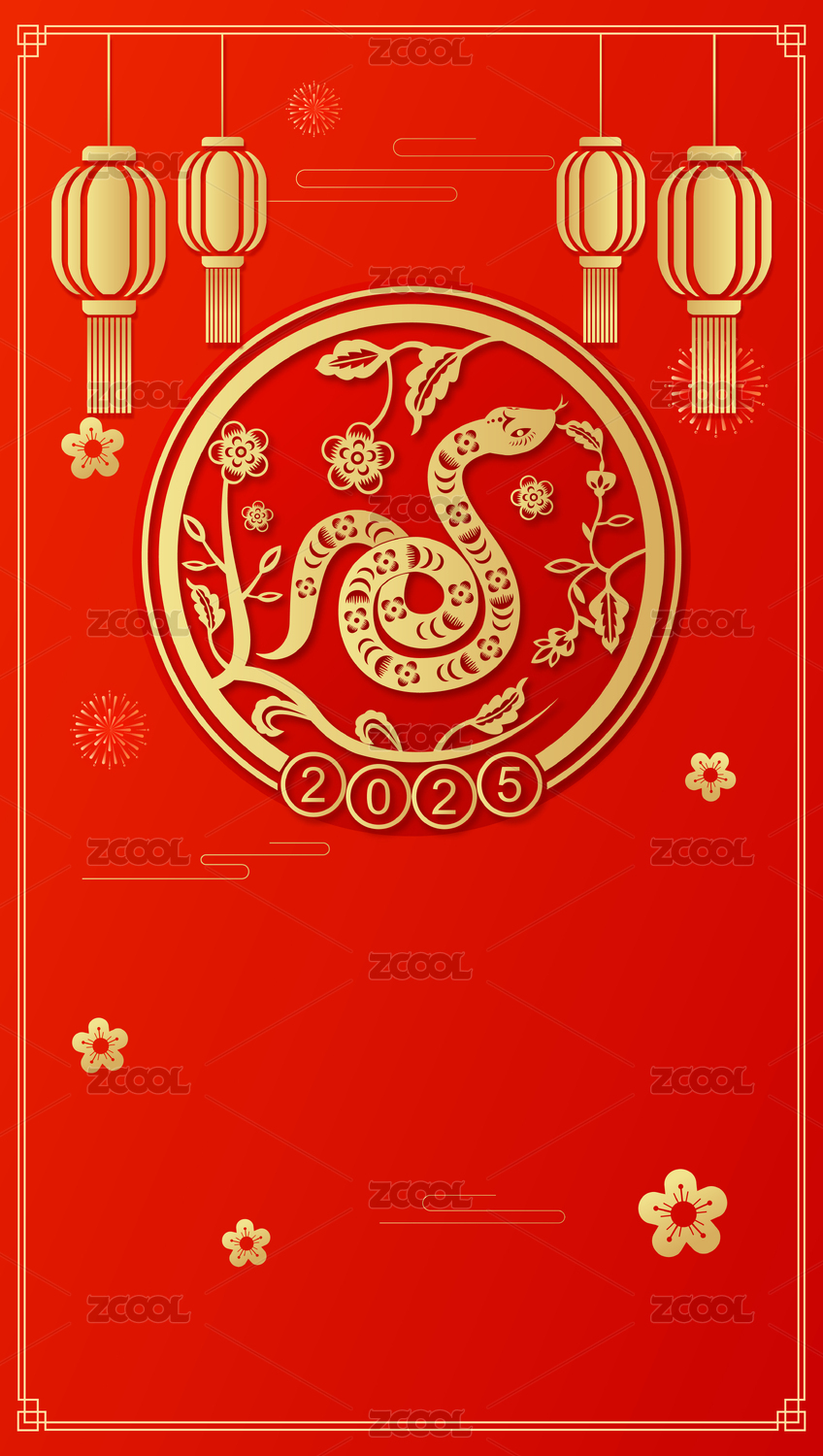 2025蛇年春节十二生肖巳蛇剪纸风格插画