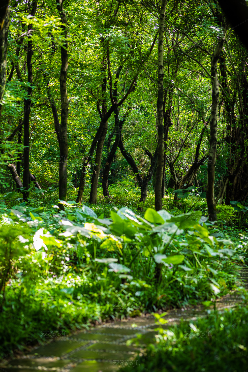 夏天的海浦东滨江森林公园林荫大道自然景观