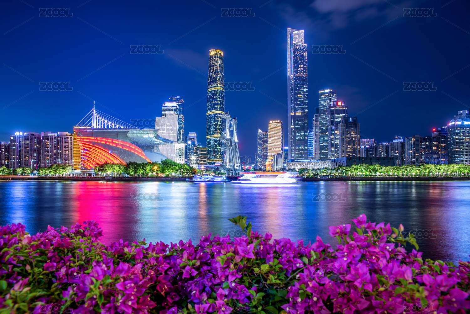 中国,广州,城市,建筑,夜景,珠江新城,地标,旅游,河流,倒影
