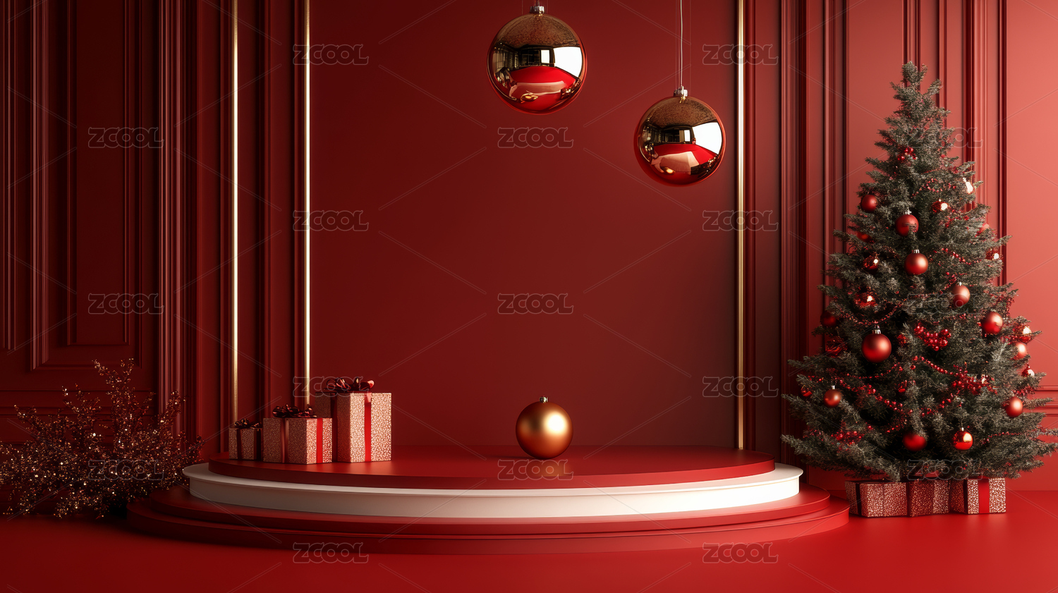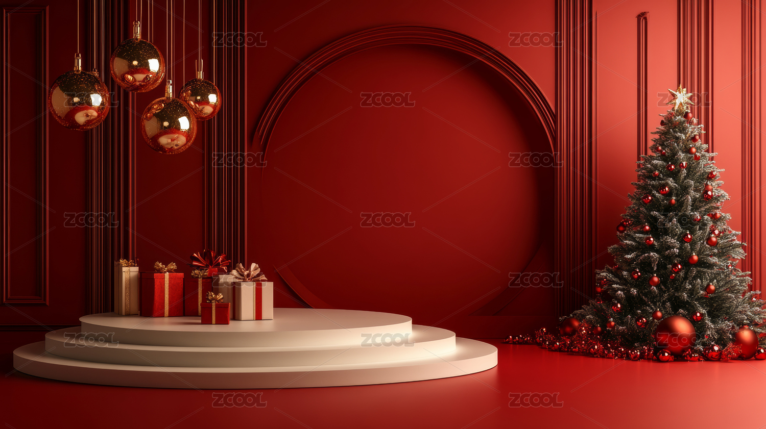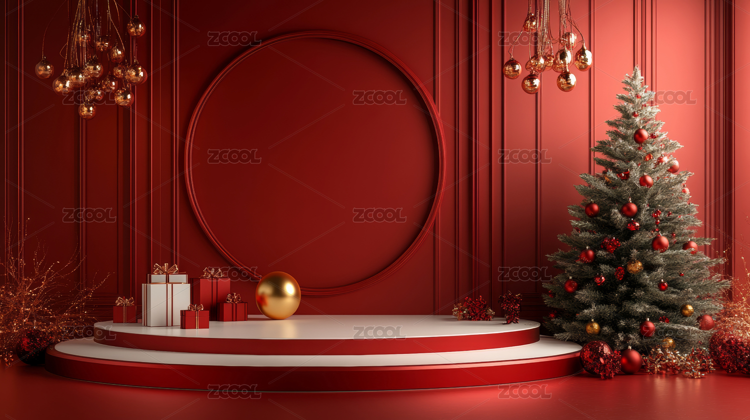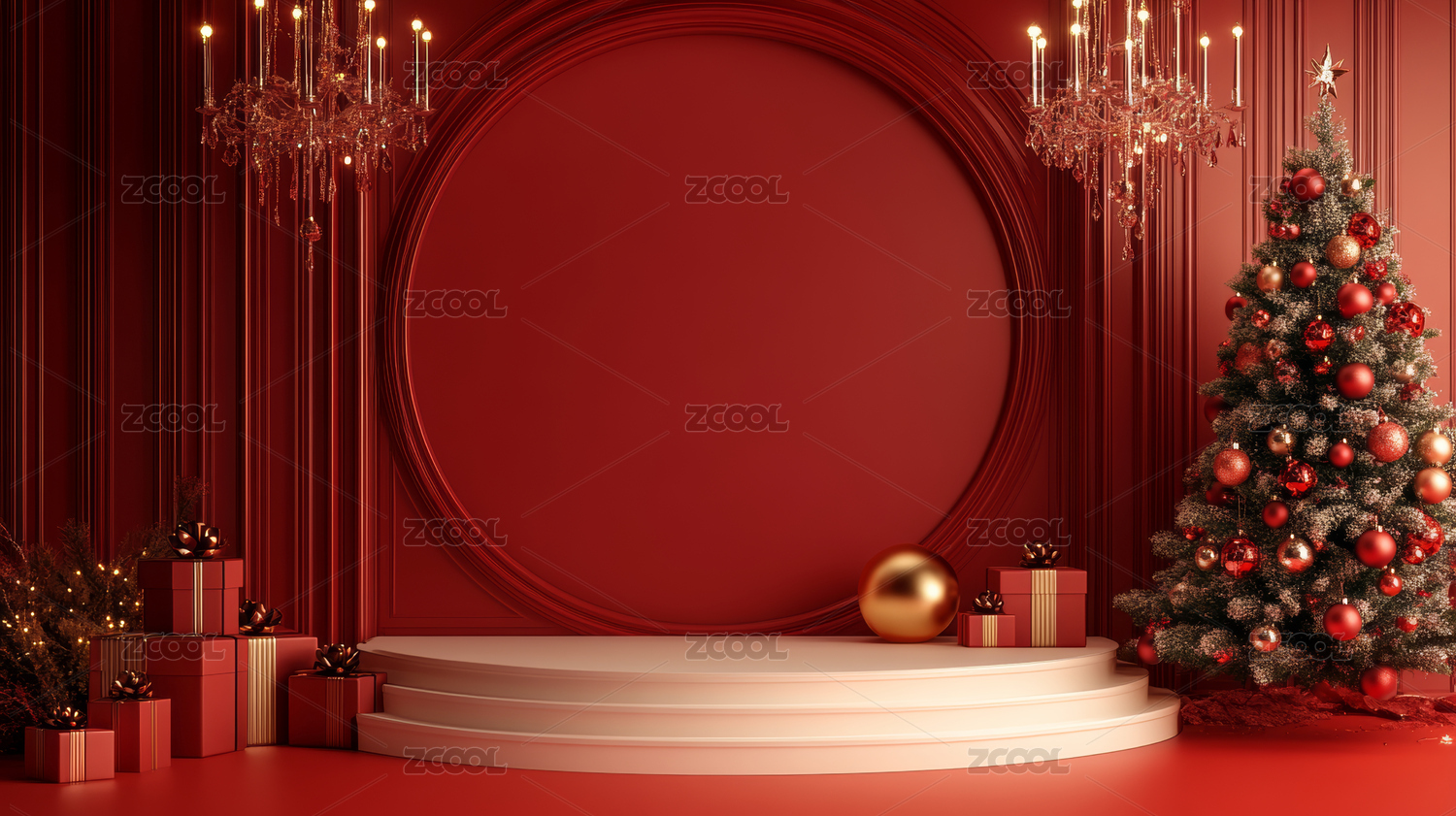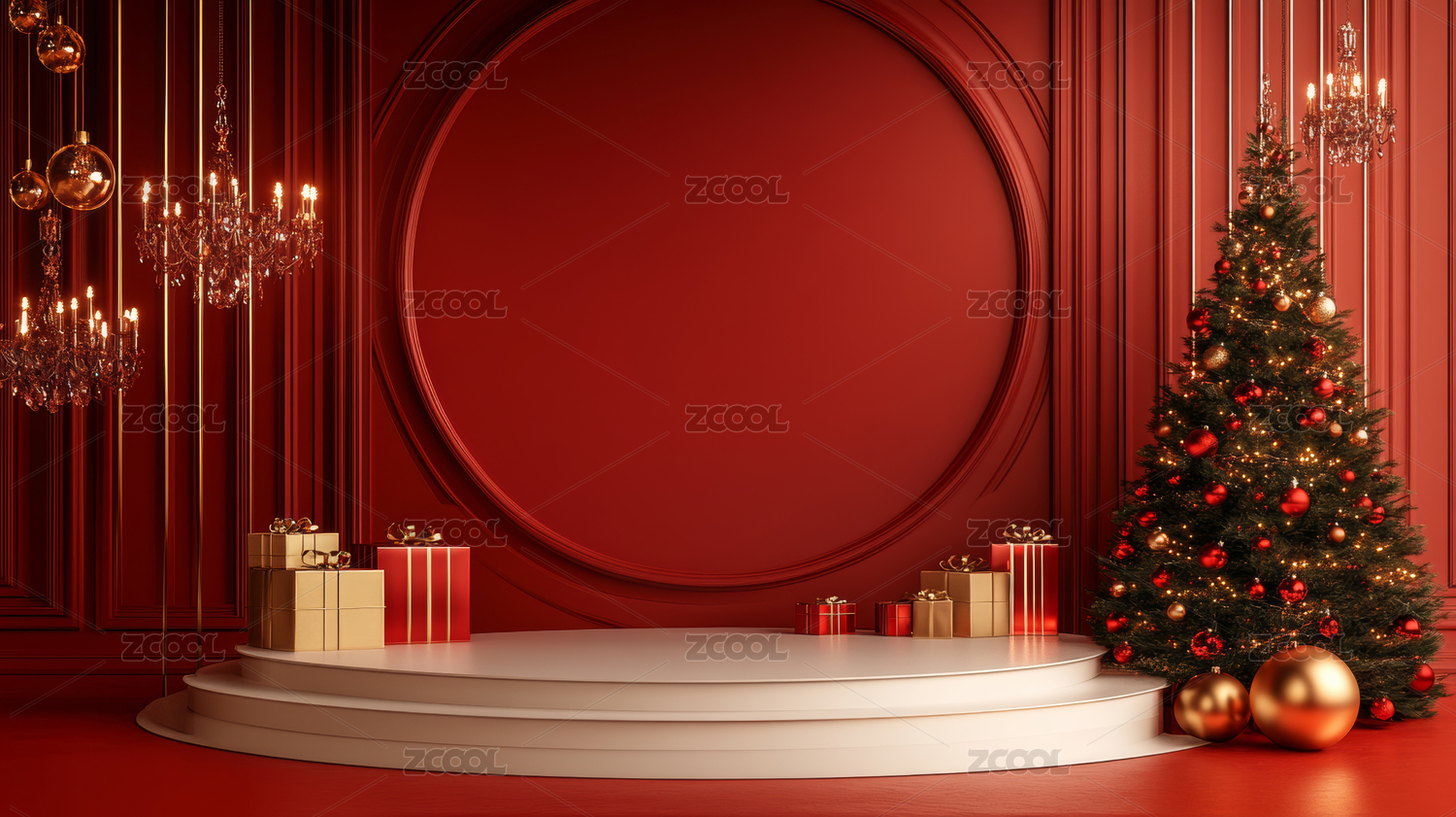 红色背景,圣诞,圣诞节,圣诞树,室内,装饰,背景,电商,电子商务,产品展台