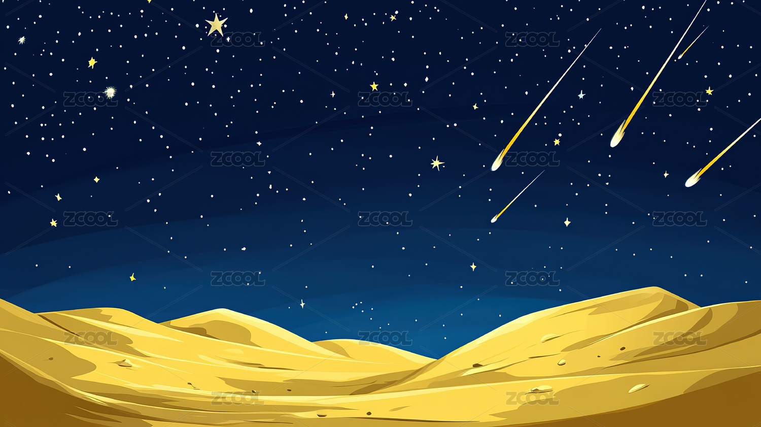 夜晚,沙漠,月光,流星,繁星,黄沙,沙丘,夜色,静谧,美好