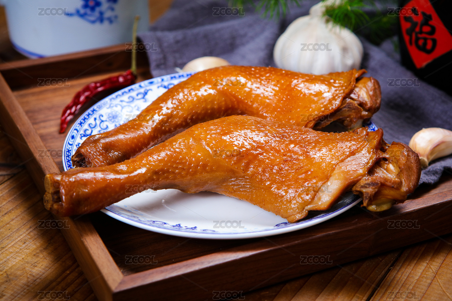 中式背景烤鸡