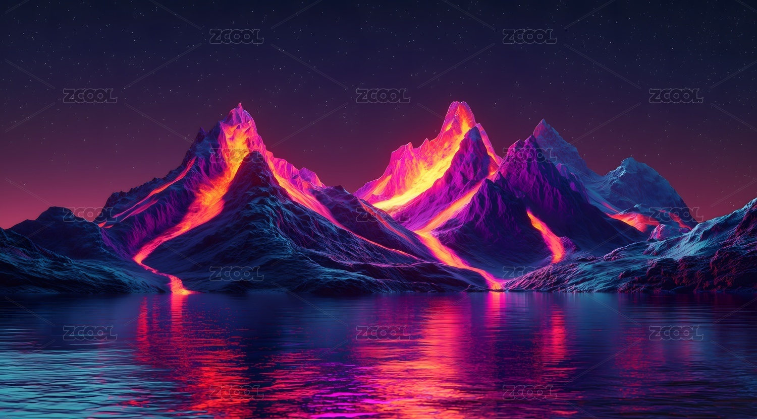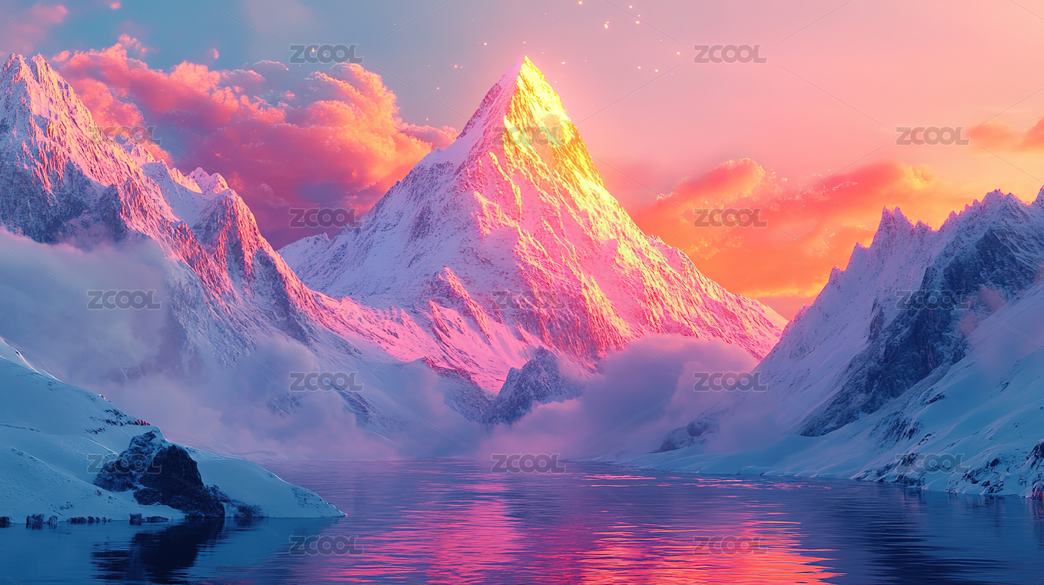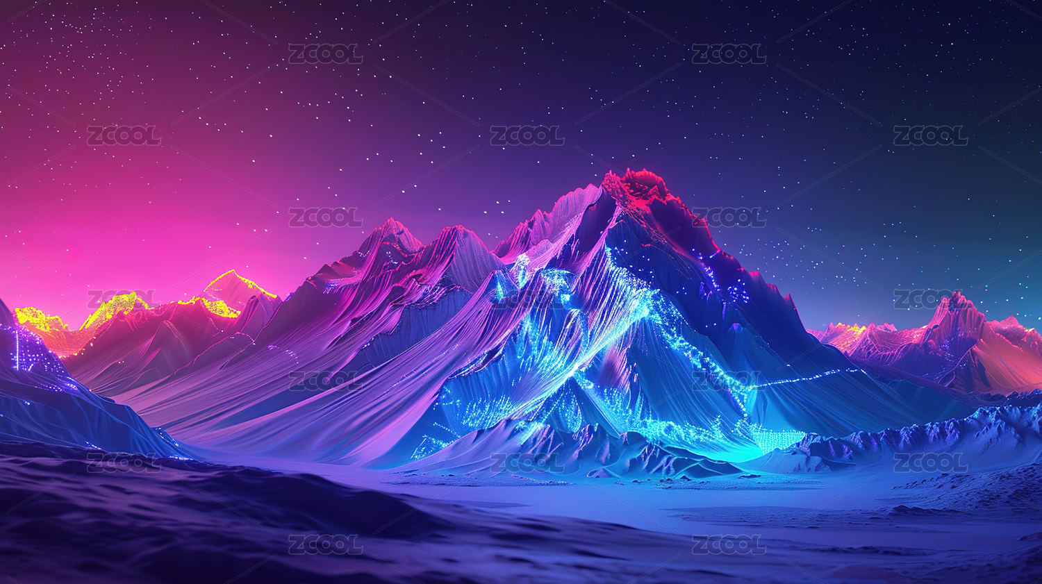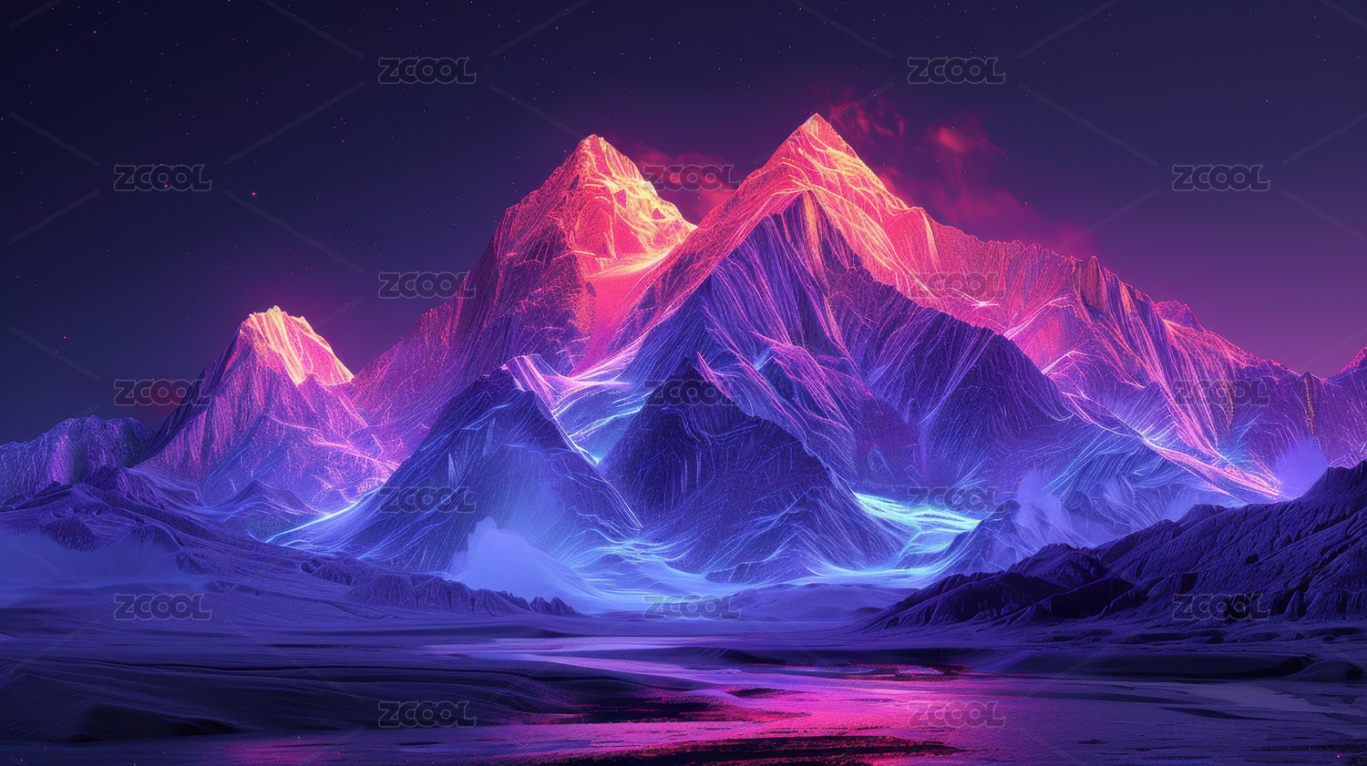 3D渲染山丘山脉高山大山山峰数字艺术插画