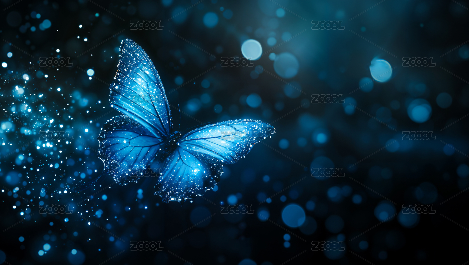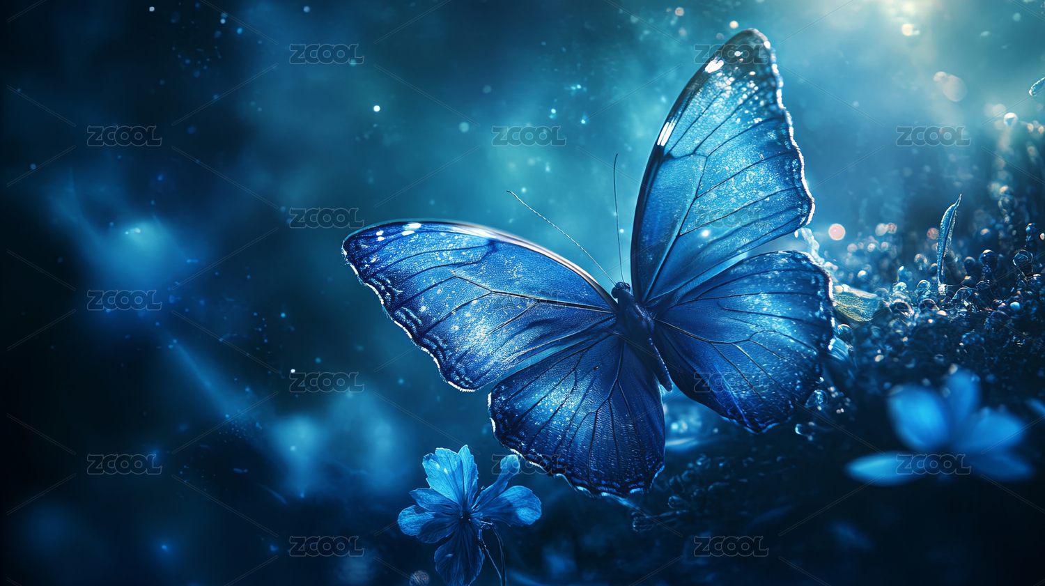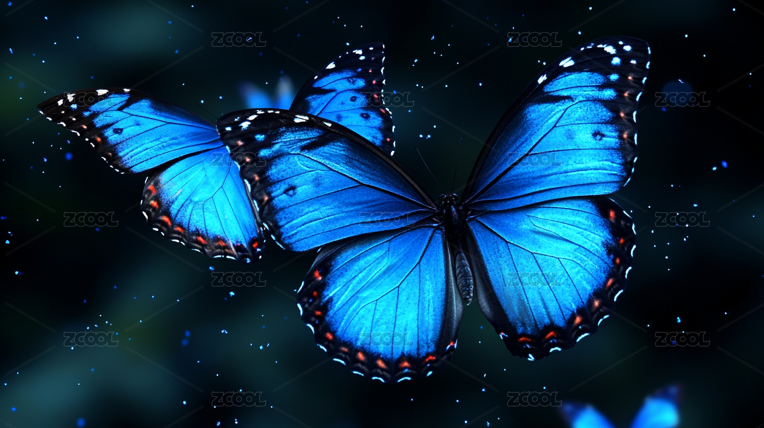 蓝色蝴蝶深蓝光斑背景