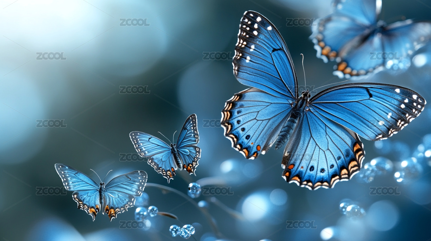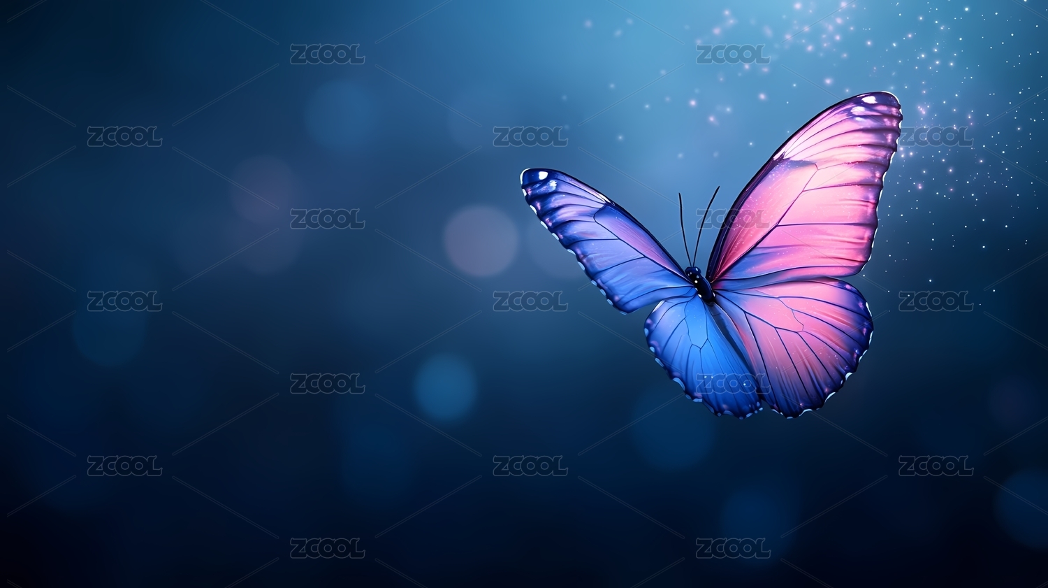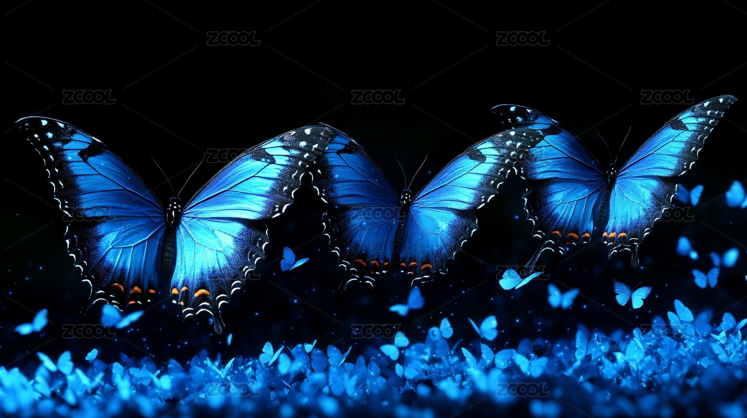 蓝色蝴蝶深蓝光斑背景