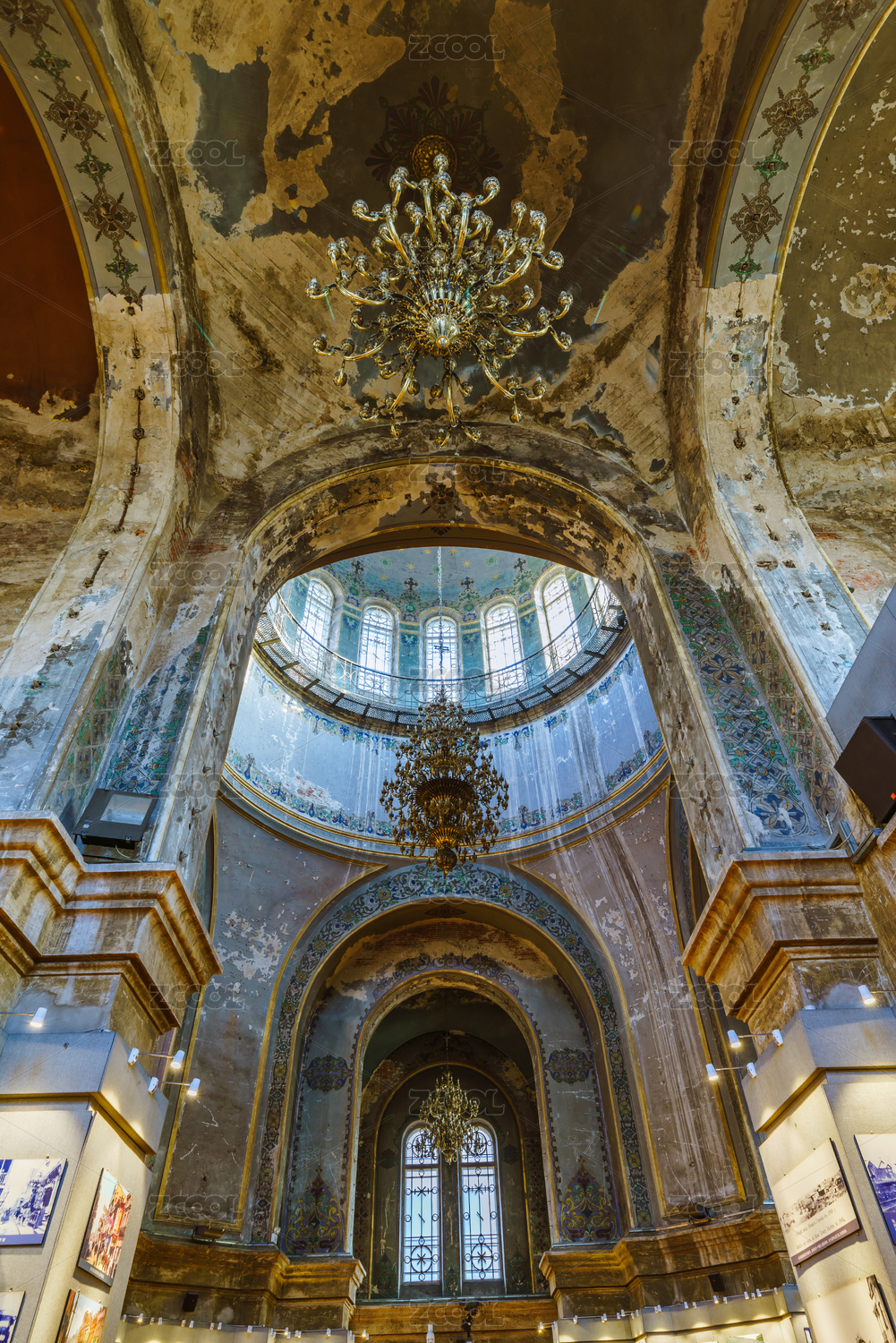 在哈尔滨china.Holy索菲亚大教堂的圣索非亚大教堂的内部是集中式,东西长:77米,长71.7米从南到北,主要部分是一个巨大的半圆形穹顶,非常高15米,中心的直径教堂32.6米,在所有40根肋骨,通过帆加入木宽7.6米的四个区块的货架。