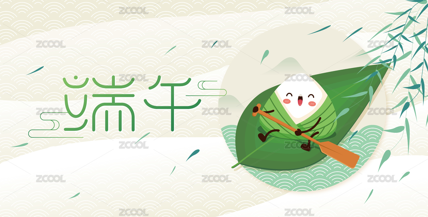 端午节赛龙舟传统节日活动粽子美食国潮插画
