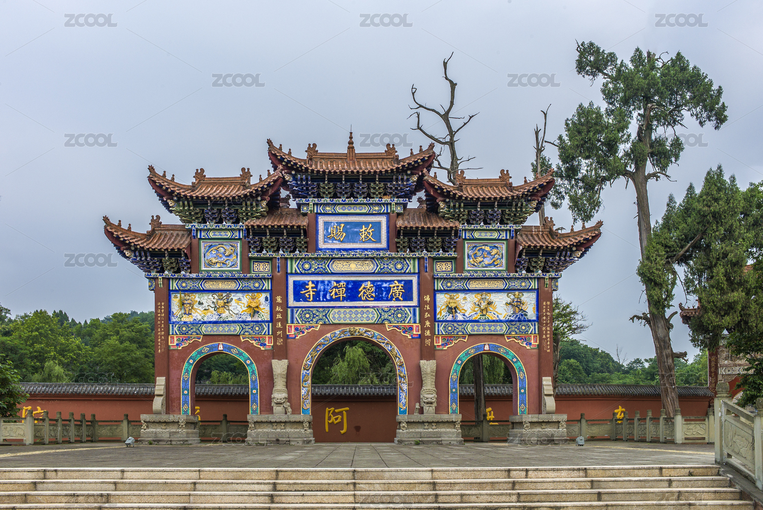 浙江绍兴会稽山兜率天景区龙华寺彩绘牌坊