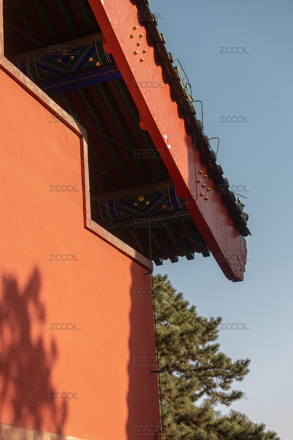 中式传统建筑宁静的红墙琉璃瓦长廊