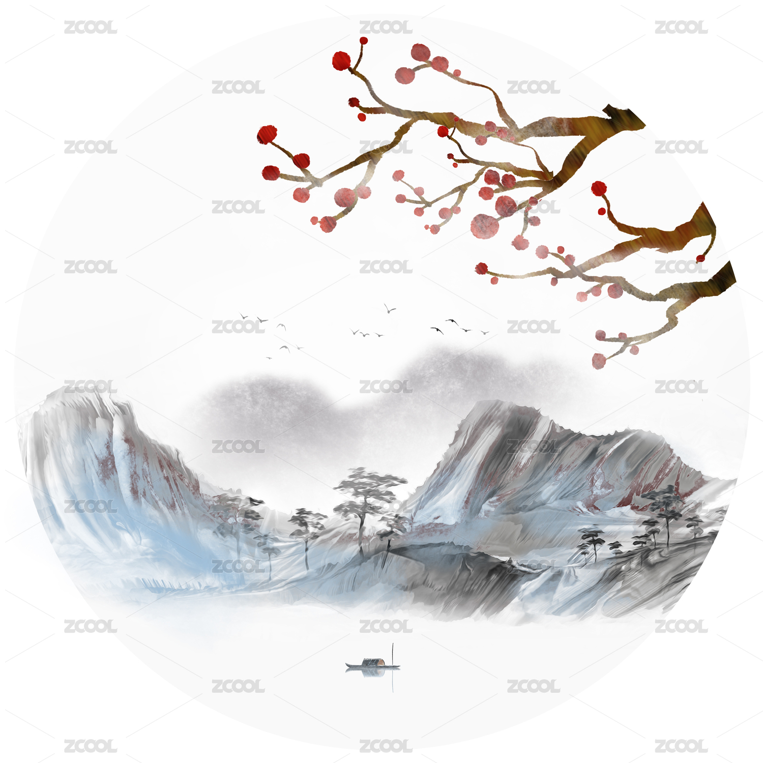 二十四节气水墨插画小寒